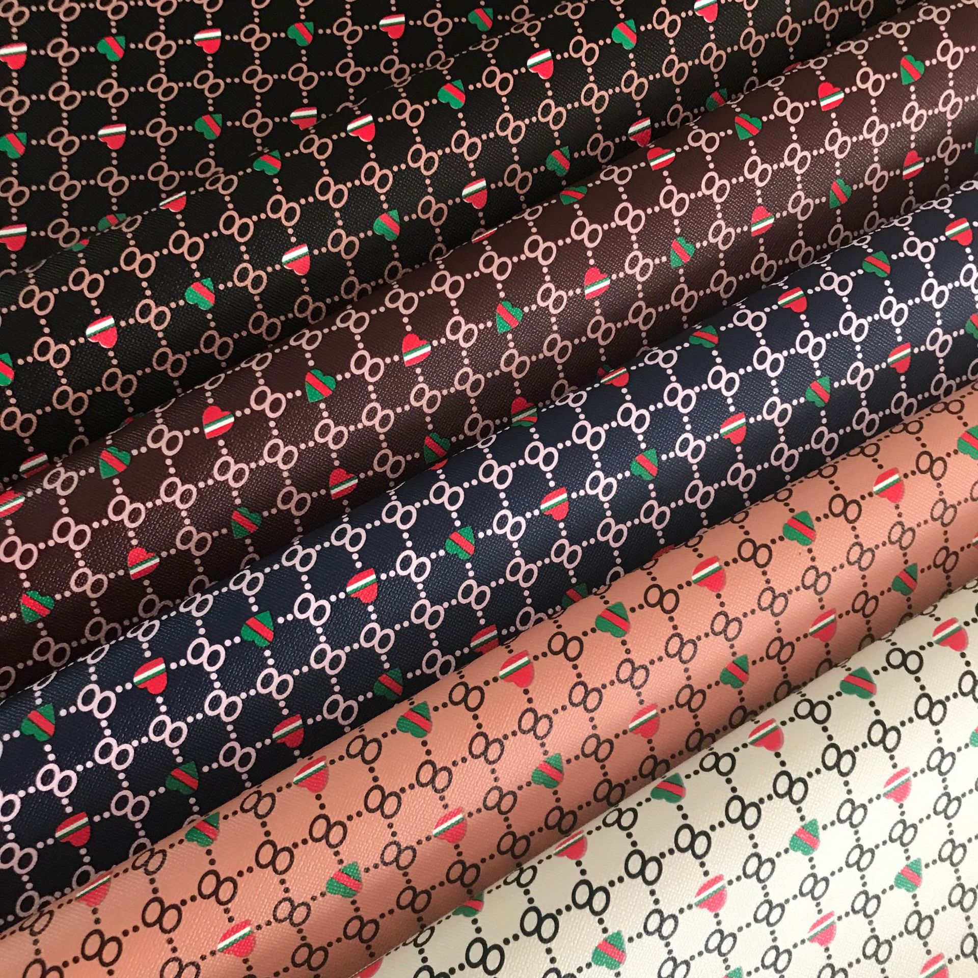 新製品の転写プリント革の漫画の布の紋様の愛の点の8字のフロントボックスの靴の材料のソファーの人工皮革