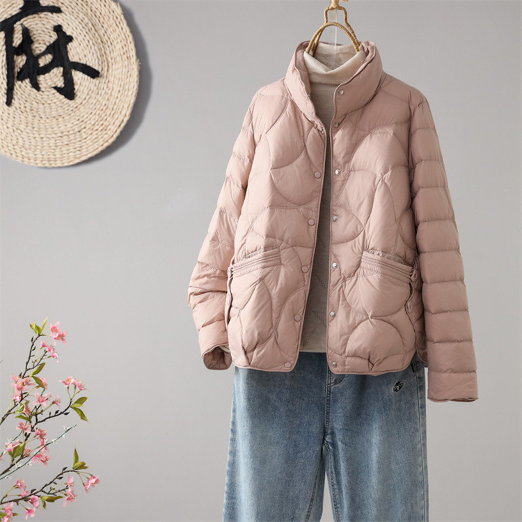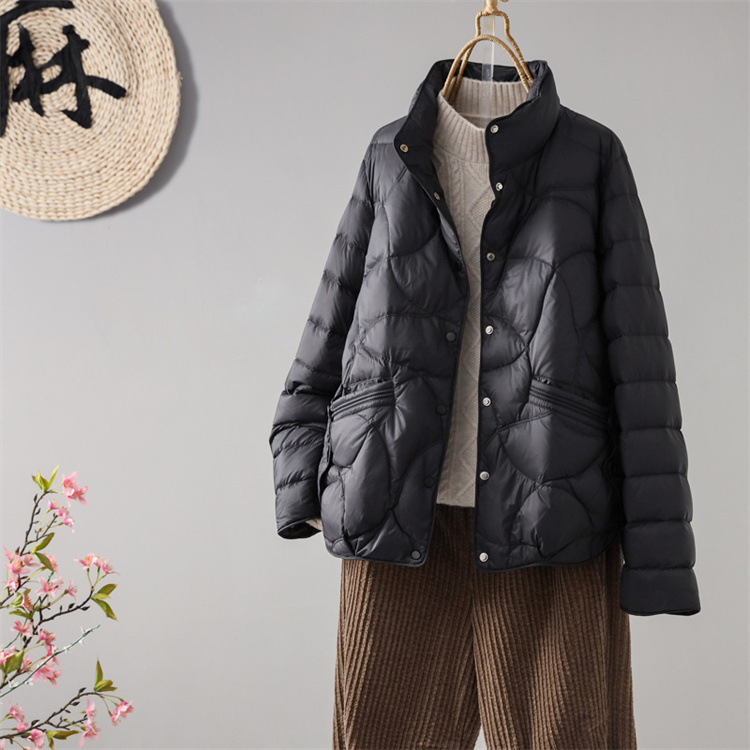 軽量ダウンジャケット レディース 2025年新作 アーティスティックスタイル スタンドカラー カジュアル ゆったり おしゃれ 多用途 無地 着痩せ効果 ショートジャケット
