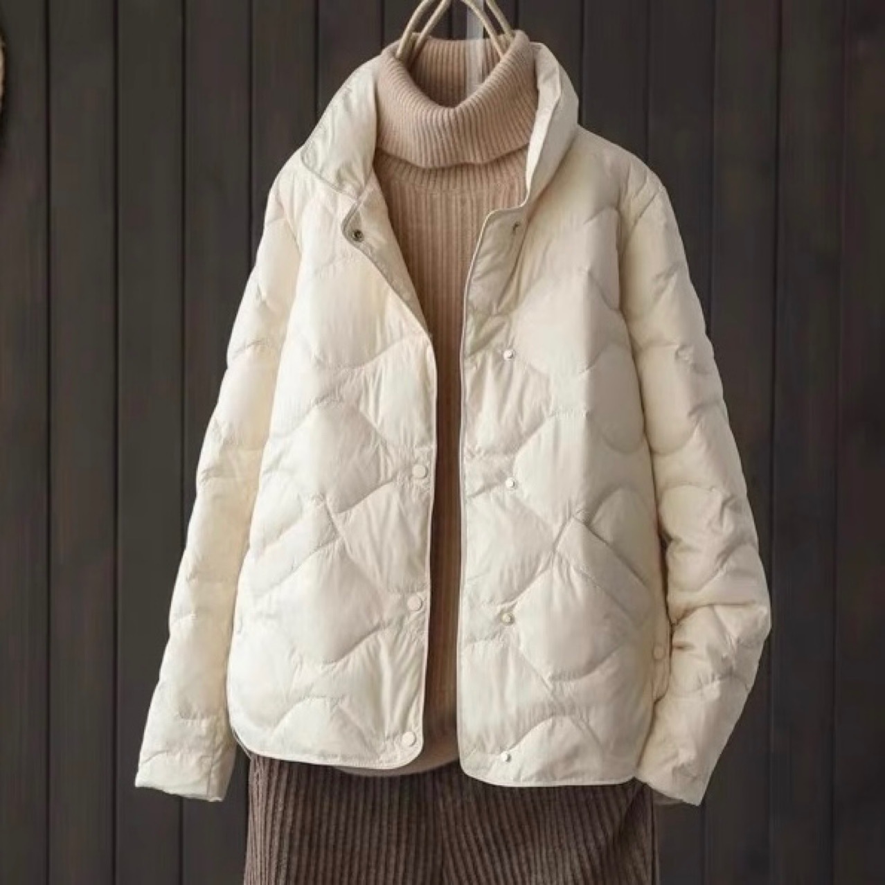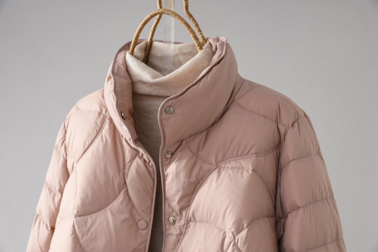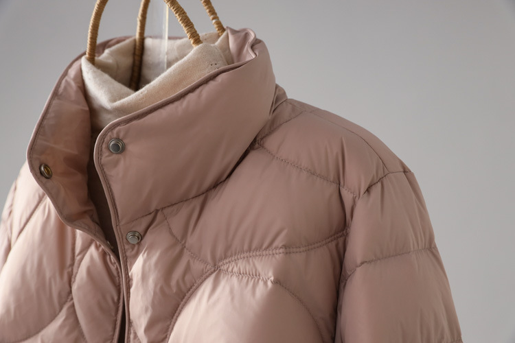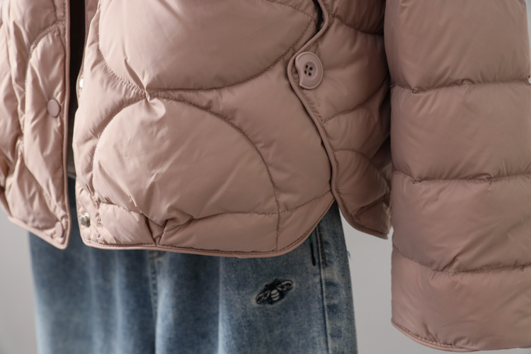 90%ホワイトダックダウン使用、ショート丈軽量ダウンジャケット、レディース秋冬新作2025、スタイリッシュなデザイン、スタンドカラー、小柄な女性向けコート