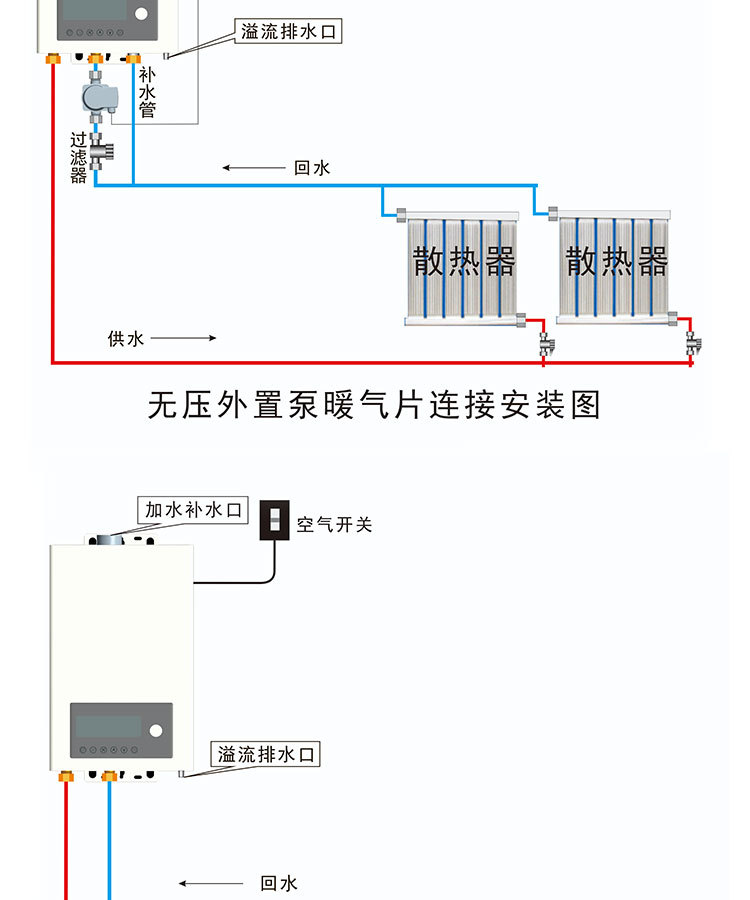 メーカーは無圧力式の暖浴暖房を提供しています。