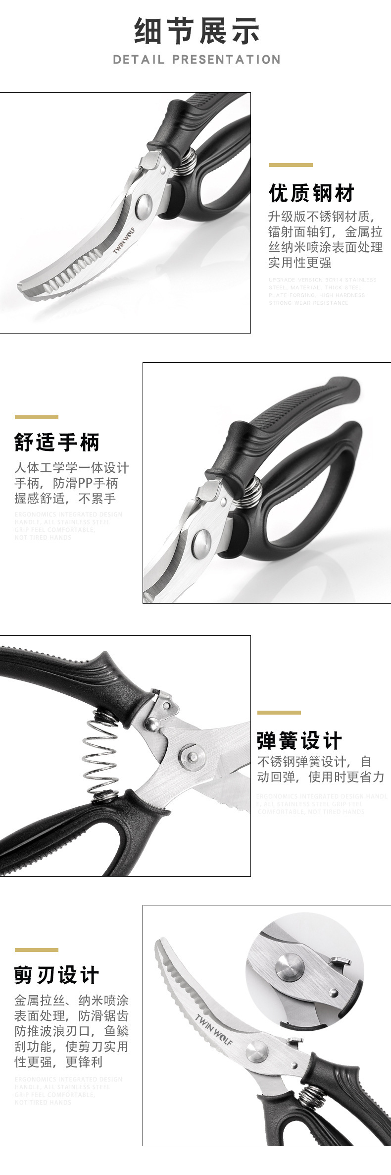 張小泉厨房ハサミ強力鶏骨切り多機能ステンレス厨房用ハサミ魚骨鶏骨切り家庭用
