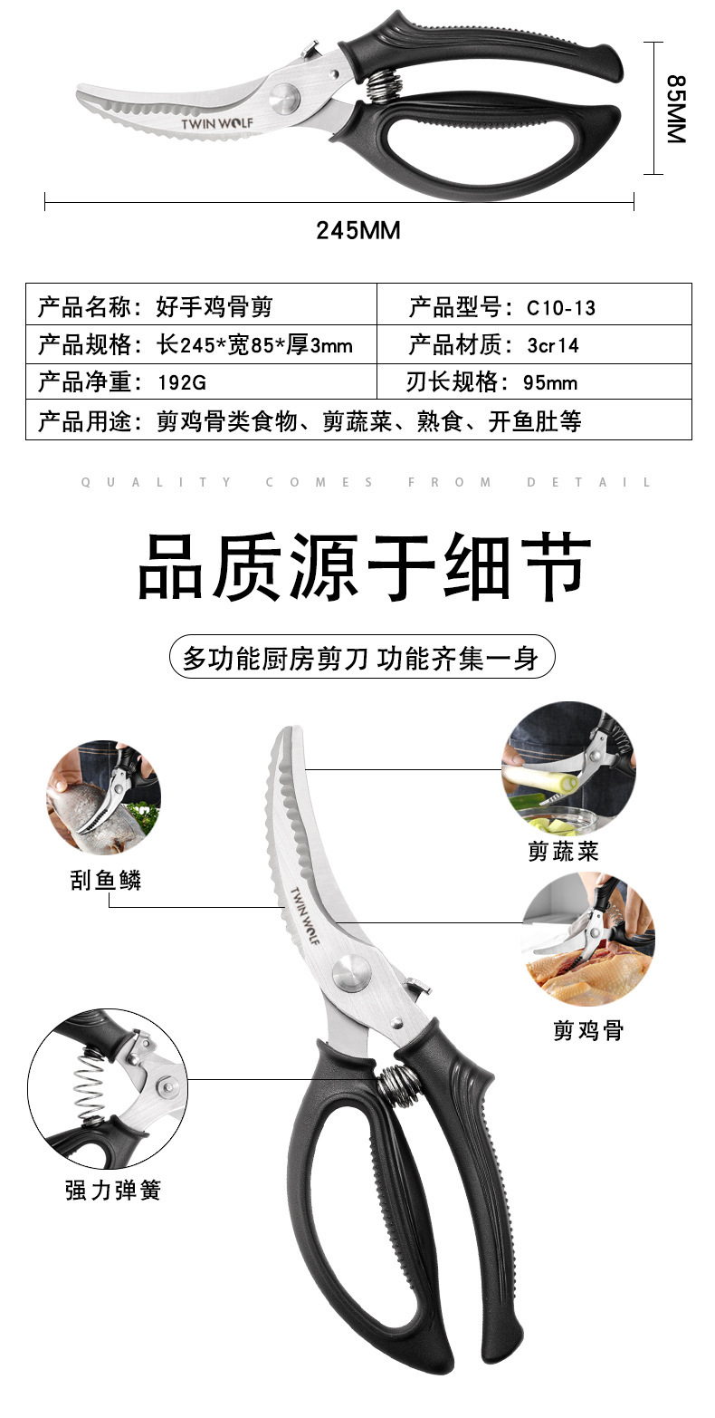 跨境热销不锈钢厨房剪刀厨用sk5多用刮鳞鸡骨剪锋利强力家专用剪
