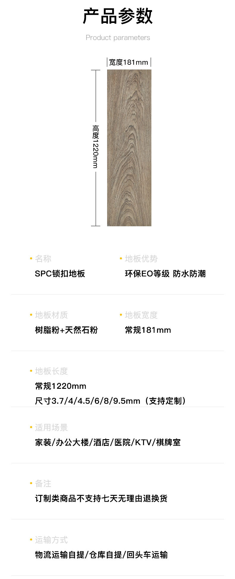 原木色spc石塑锁扣地板全新料家用翻新加厚耐磨木纹防水石晶地板