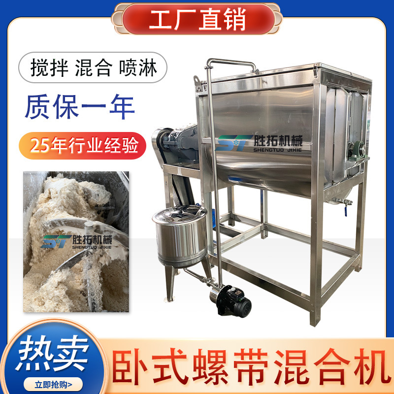 豆腐粕水平ミキサー ジェルキー加熱水平ミキサー 飼料添加剤スプレー付きリボンミキサー