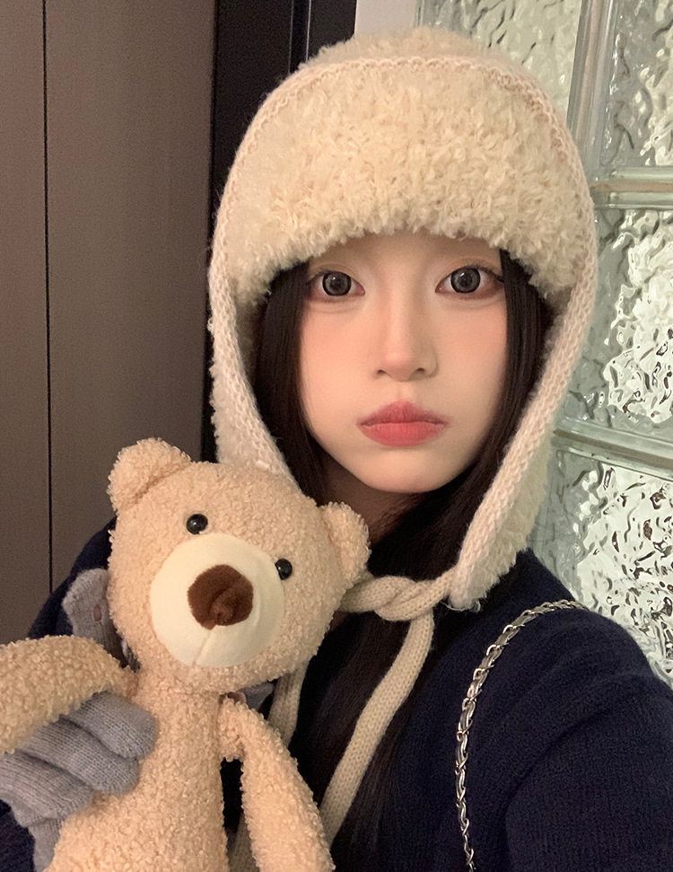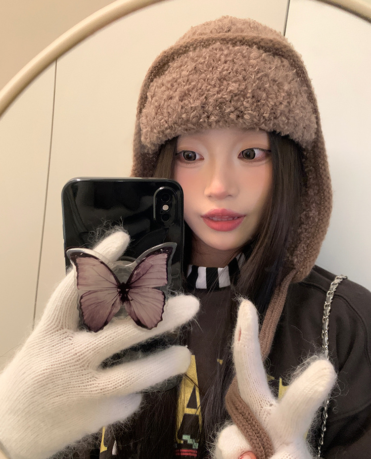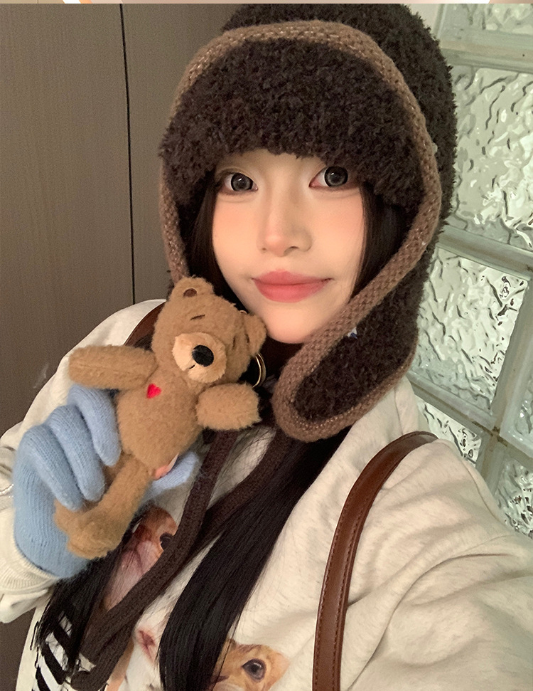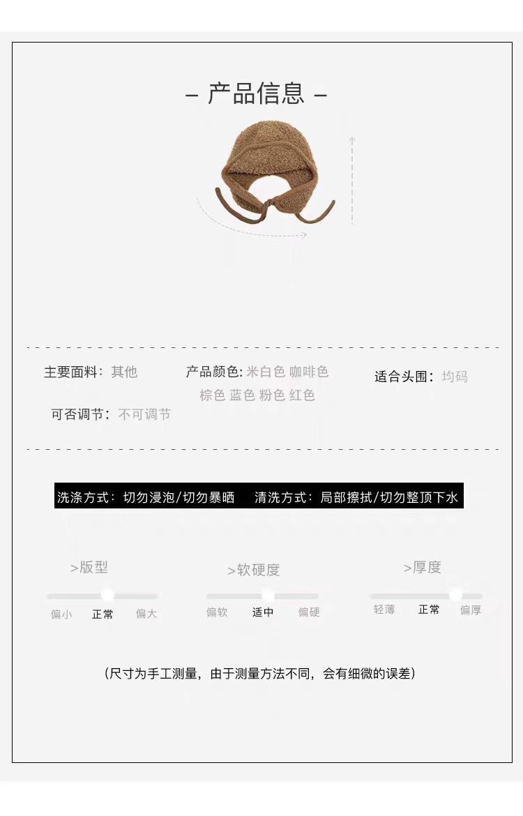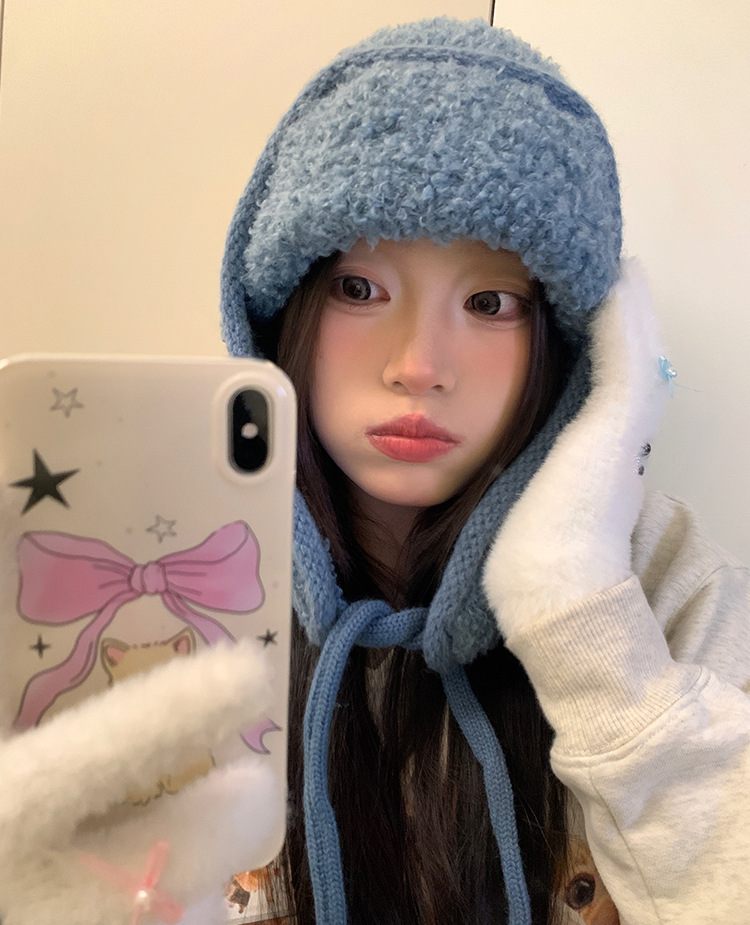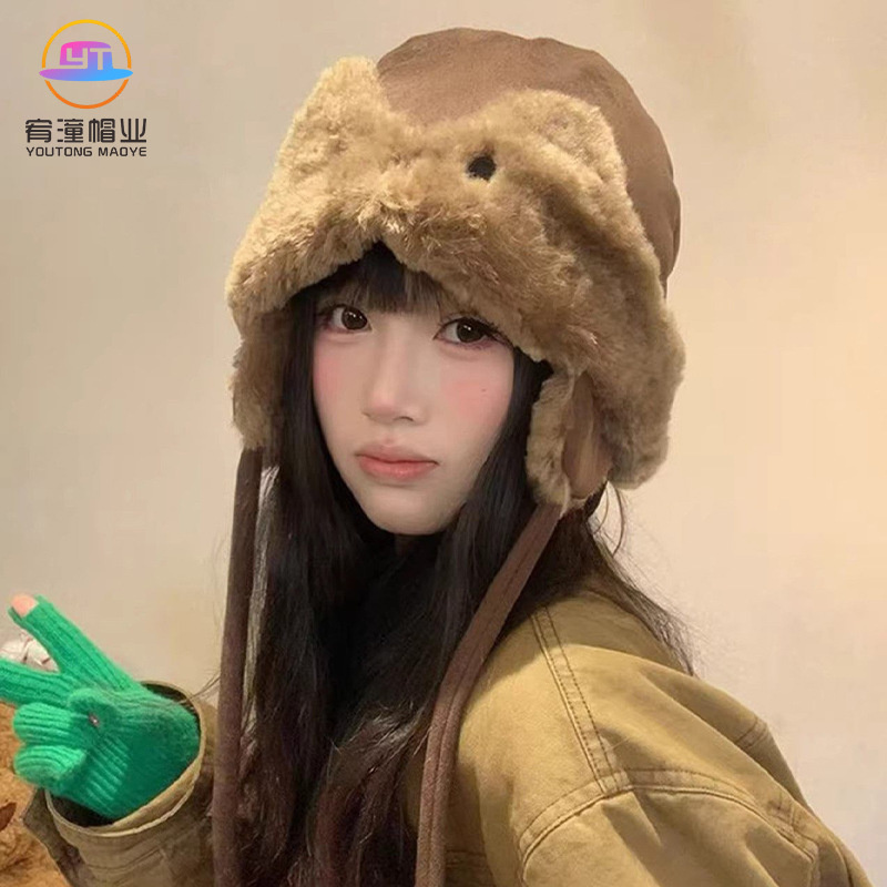 韩系氛围感飞行员帽护耳骑车帽子女秋冬季户外雷锋帽加厚包头帽潮
