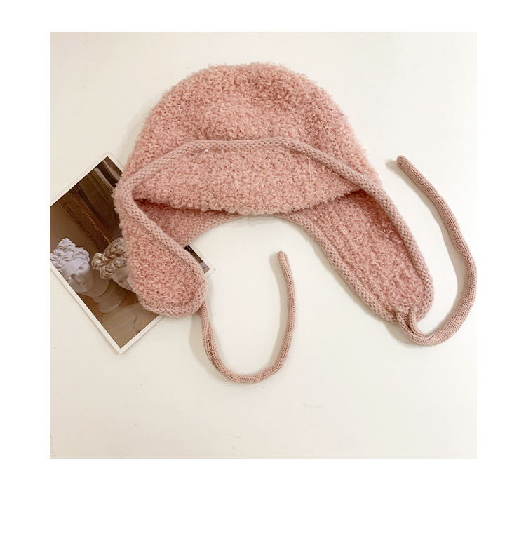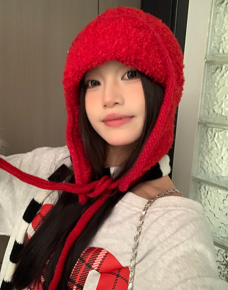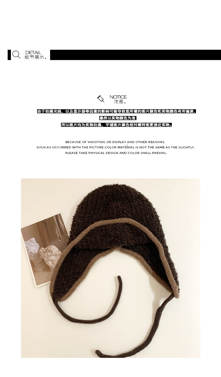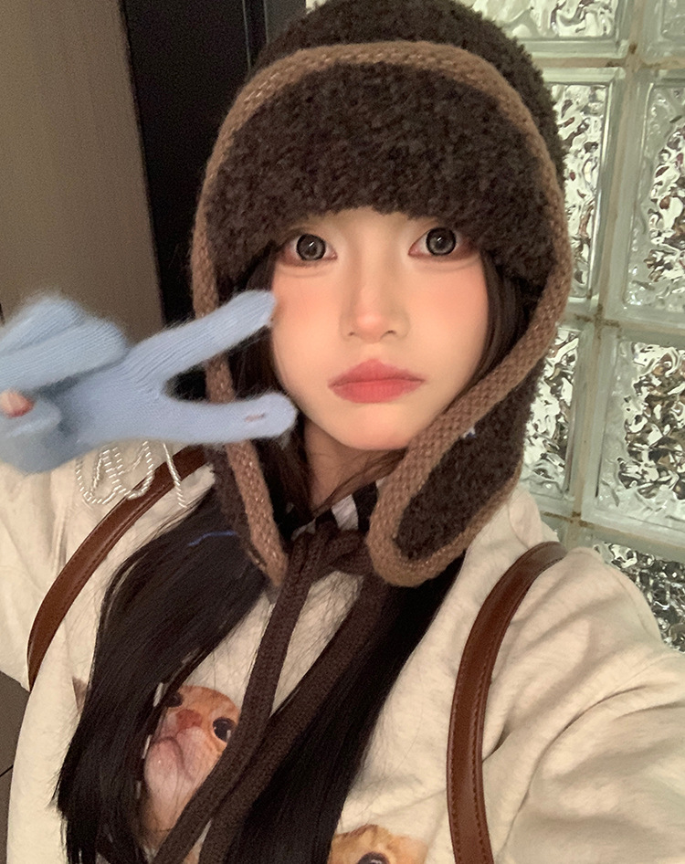 韩系小众复古麻花针织帽毛球系带护耳帽冬季2025新款保暖包头帽