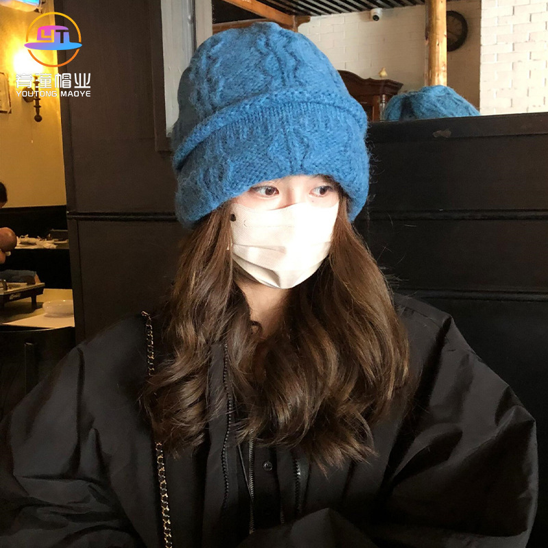 日系慵懒风手工钩花堆堆帽冬天卷边毛线帽氛围感休闲百搭包头冷帽