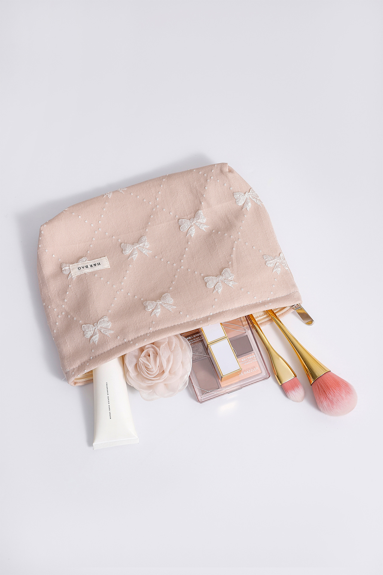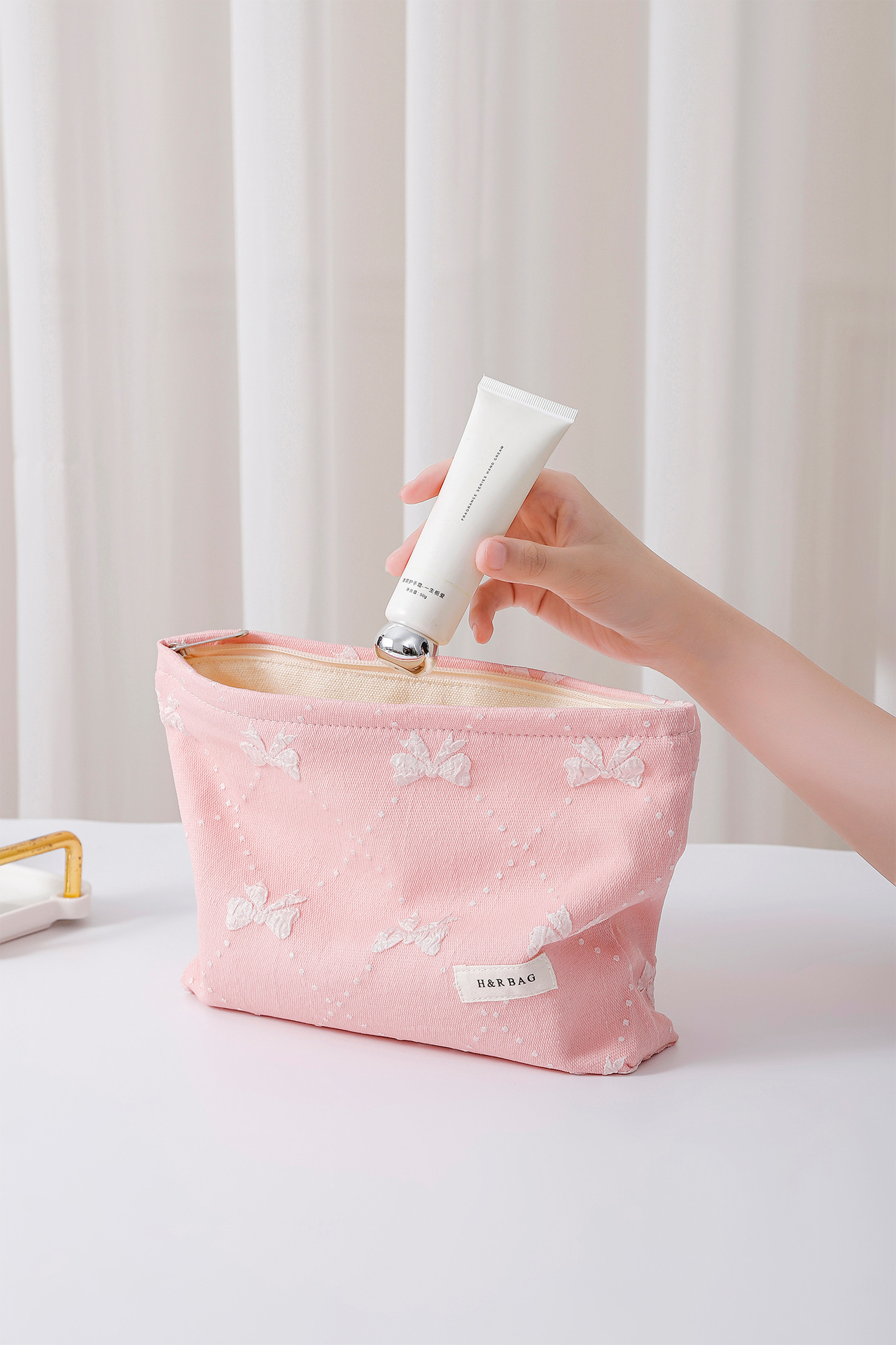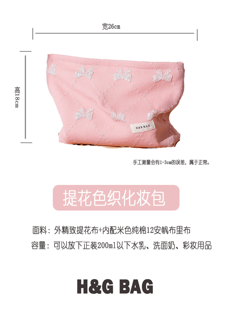 跨境粉色蝴蝶结棉布化妆包大容量护肤品收纳包便携洗漱包套装