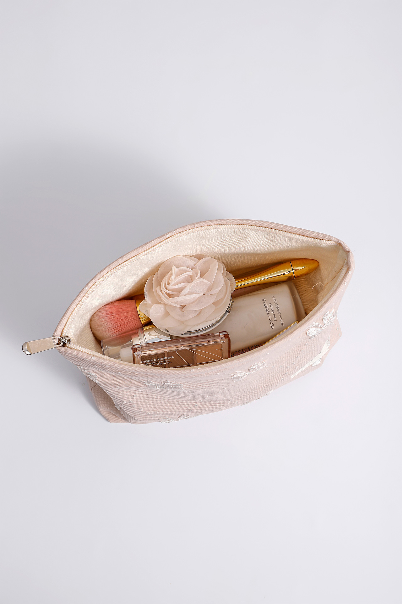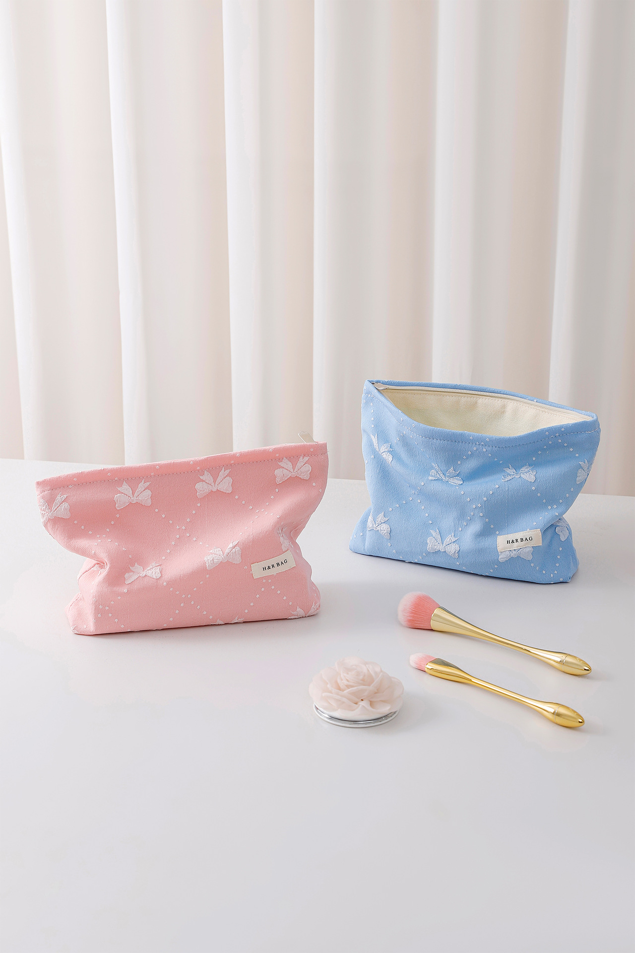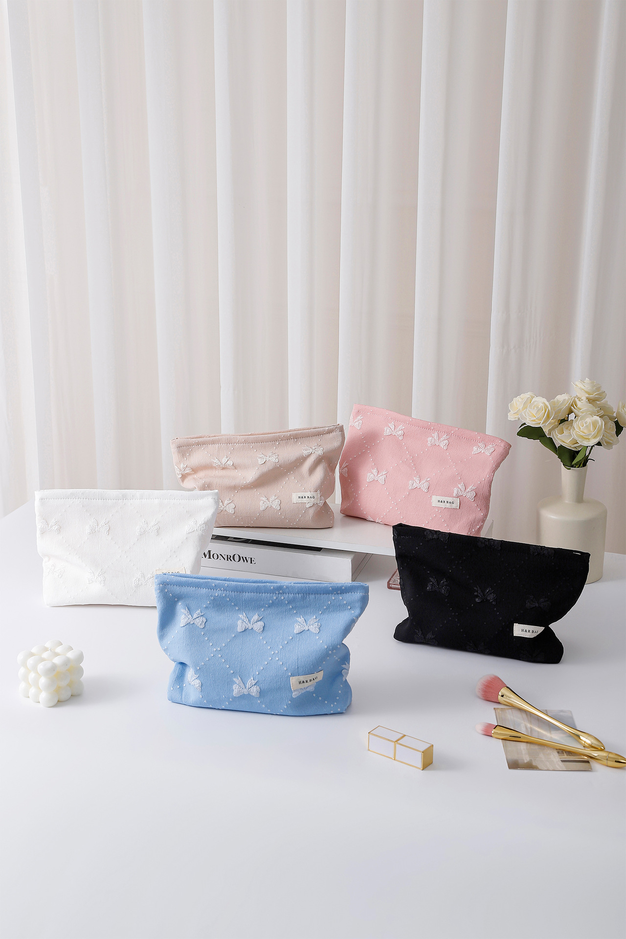 跨境粉色蝴蝶结棉布化妆包大容量护肤品收纳包便携洗漱包套装