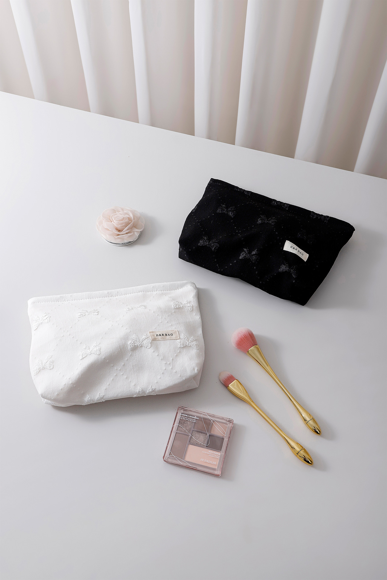 清新甜美蝴蝶结刺绣女生化妆包旅行护肤品收纳包可爱便携手拿包
