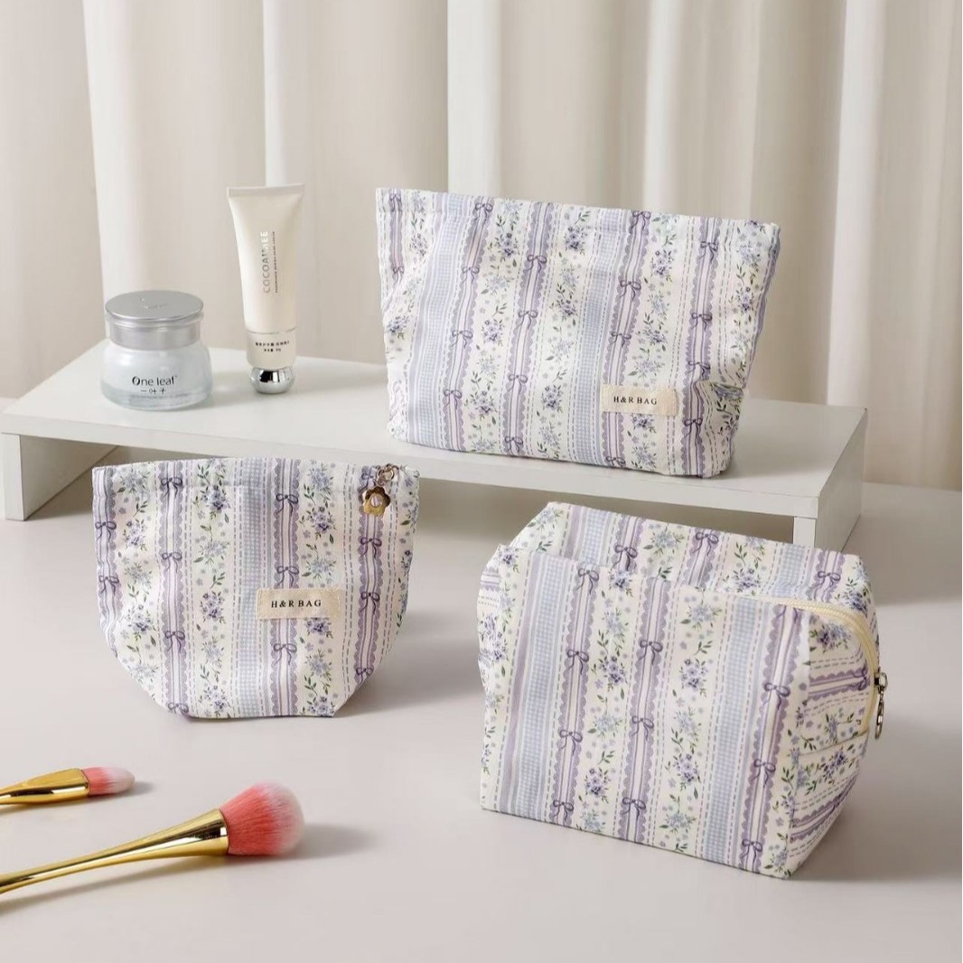 ins小清新碎花手拿化妆包便携旅游护肤品收纳包大容量枕头包紫色