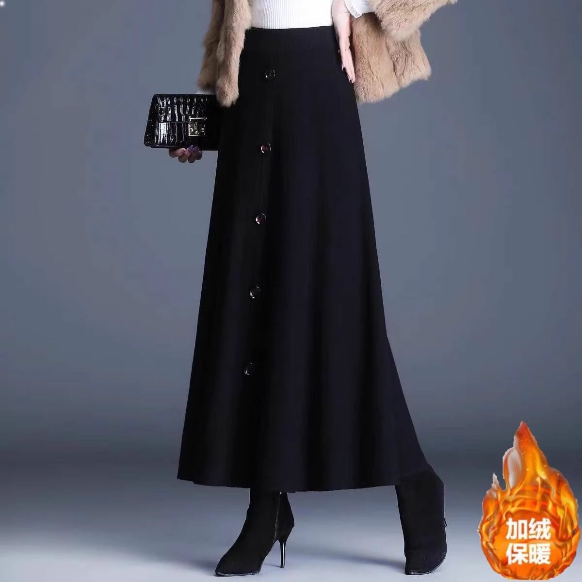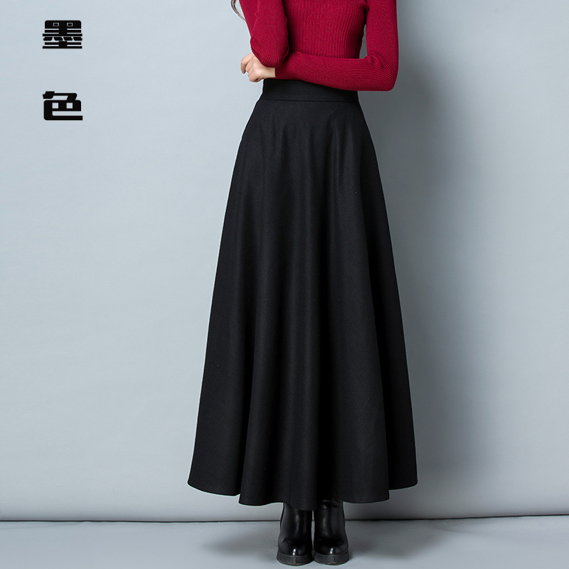 冬の毛の長いスカートの半身のスカートの厚い字のスカートの高腰の大きいサイズの長いスカートの純色の大きいサイズのラシャの冬の長いスカートの女性