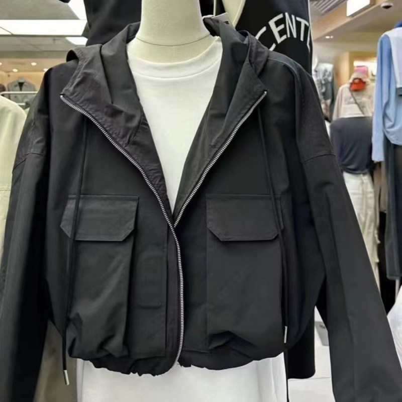 ヨーロッパの商品の秋の小衆のゆったりした原宿のジャケットの上着と帽子のポケットの工装のコートの女性の短いタイプの小さい子供