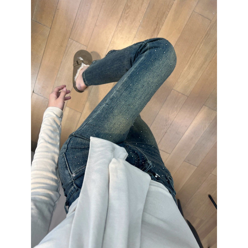 青いデニムのストレートパンツの女性2025年春夏の新型長ズボンの高腰弾力感があります。