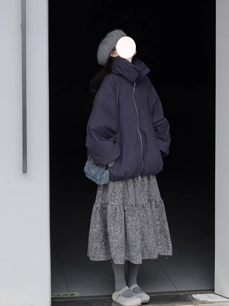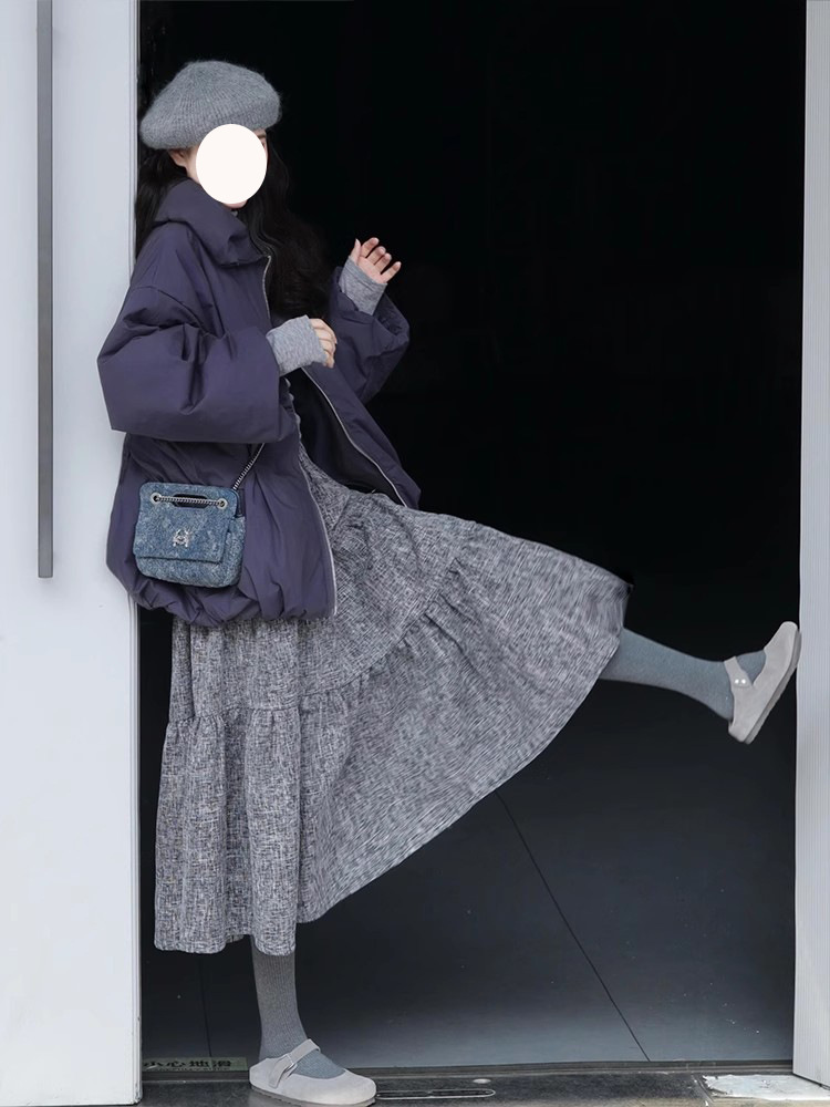 复古宽松夹棉半身裙女秋冬2025新款慵懒风小众褶皱肌理感花苞裙子