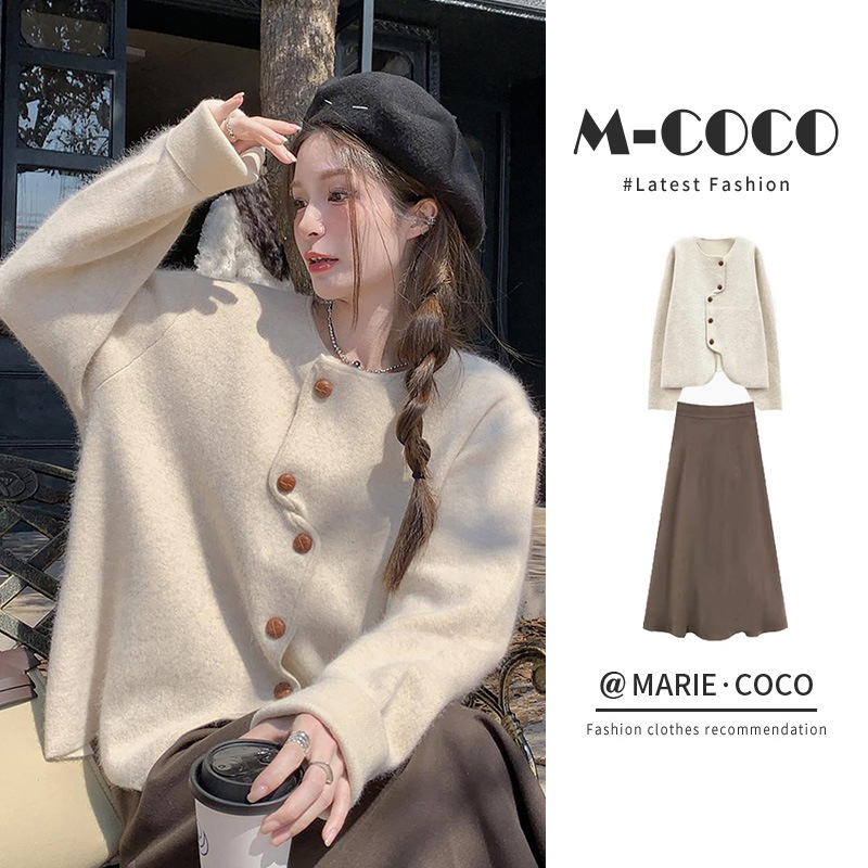 高級感気質減齢シャツコート半身スカートセット女性2025秋冬怠惰ゆったり三点セット