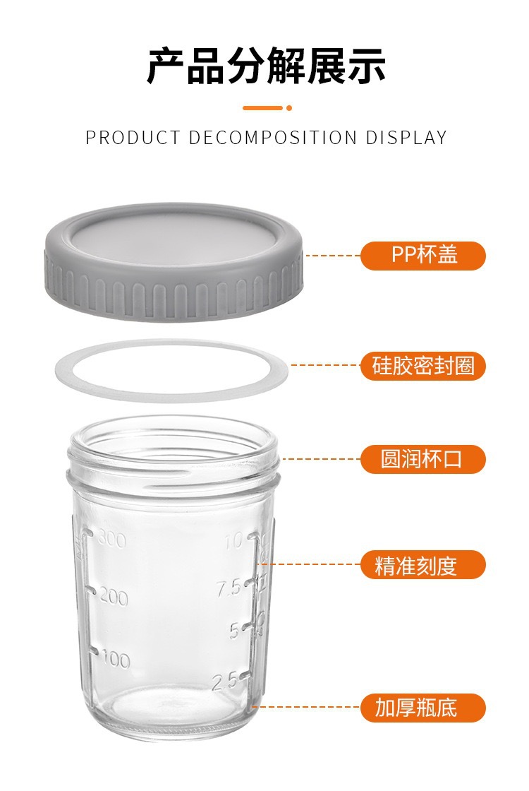 亚马逊隔夜燕麦杯玻璃带盖带勺密封早餐刻度杯便携牛奶沙拉酸奶杯