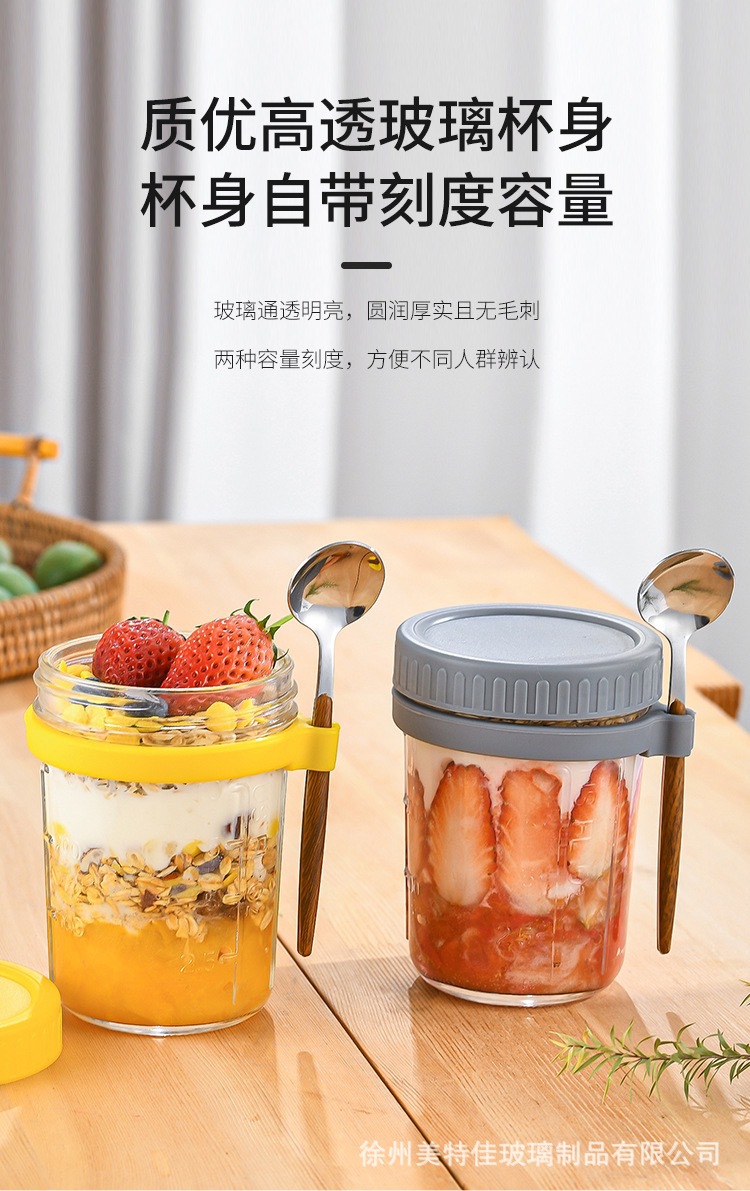 隔夜燕麦杯便携酸奶早餐杯高颜值挂勺玻璃杯梅森杯燕麦牛奶沙拉杯