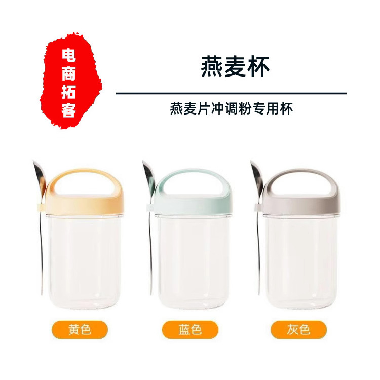 玻璃隔夜燕麦杯密封带盖早餐杯带带勺子密封沙拉牛奶杯奶昔麦片杯