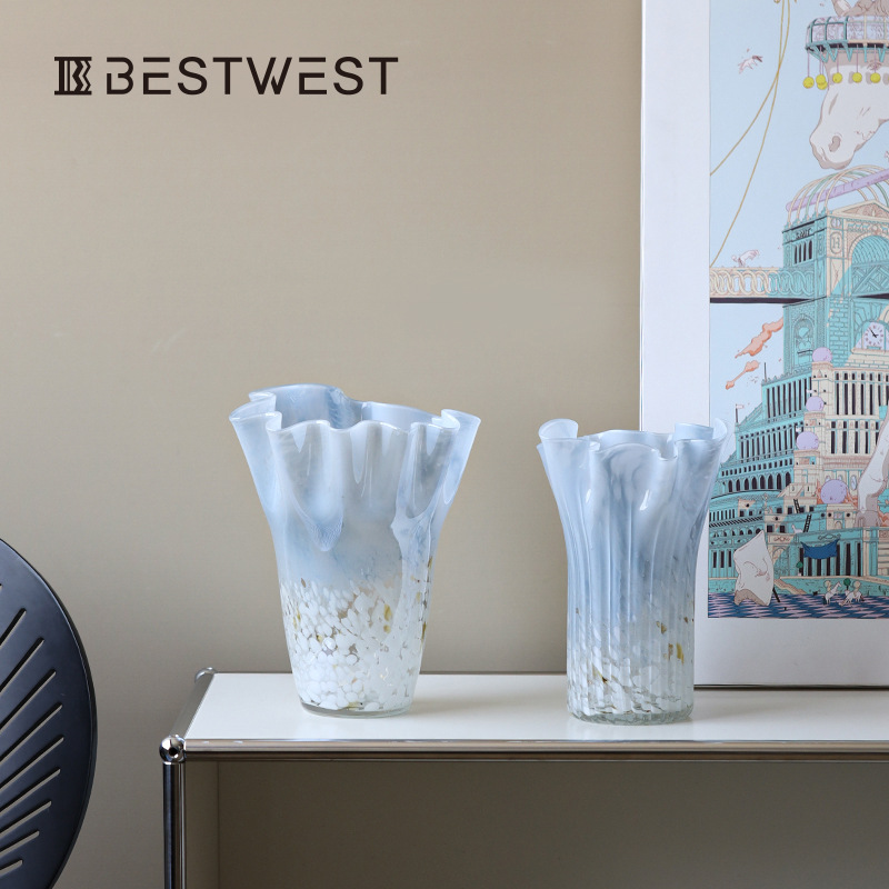 Best west中古高級感波点ガラス生け花花瓶家庭用ソフト装飾品水培花器卸売り