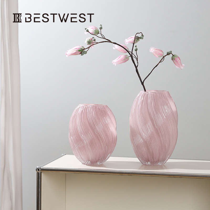 Best west中古の浅粉ガラスがとてもきれいな花瓶の置物が軽くて高級な客間の水培が花瓶を挿します。