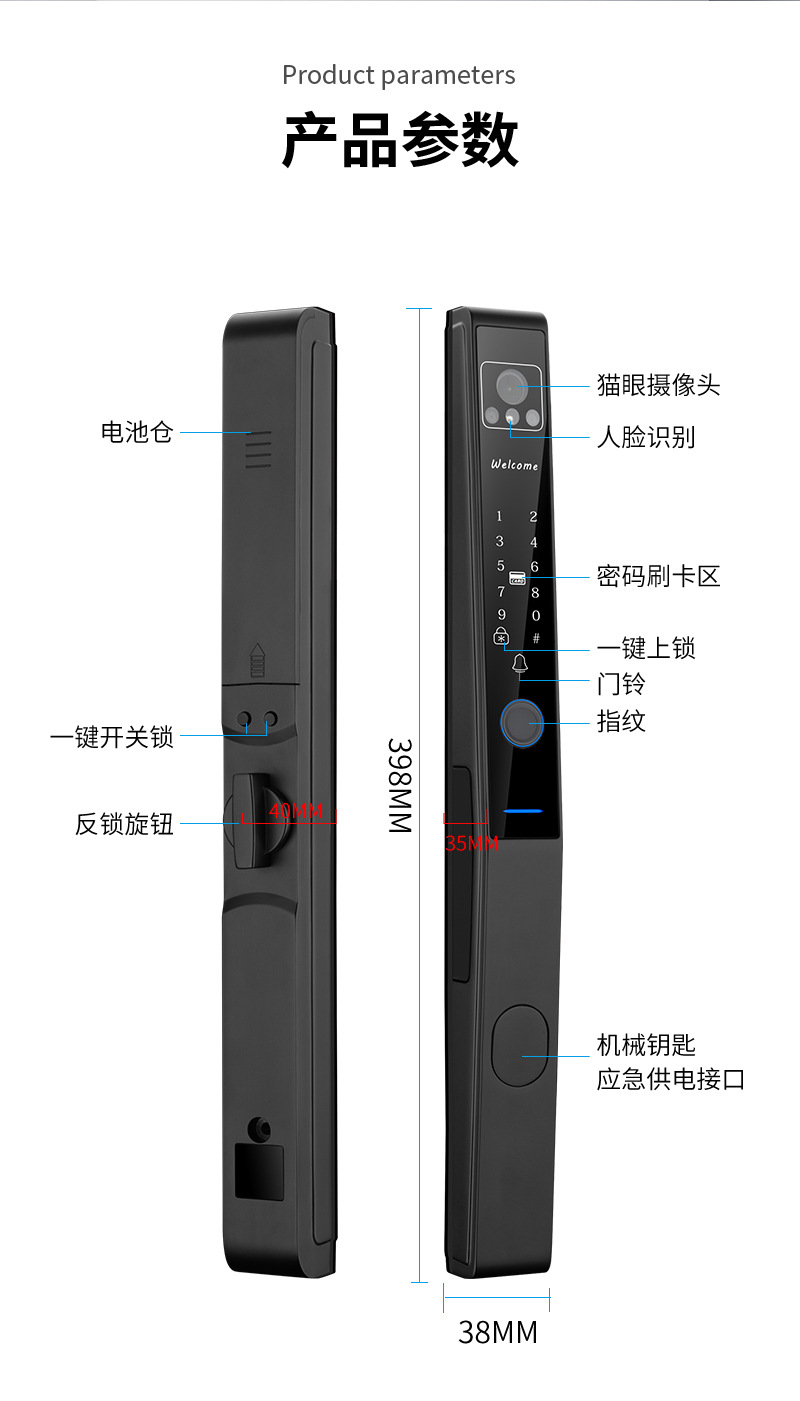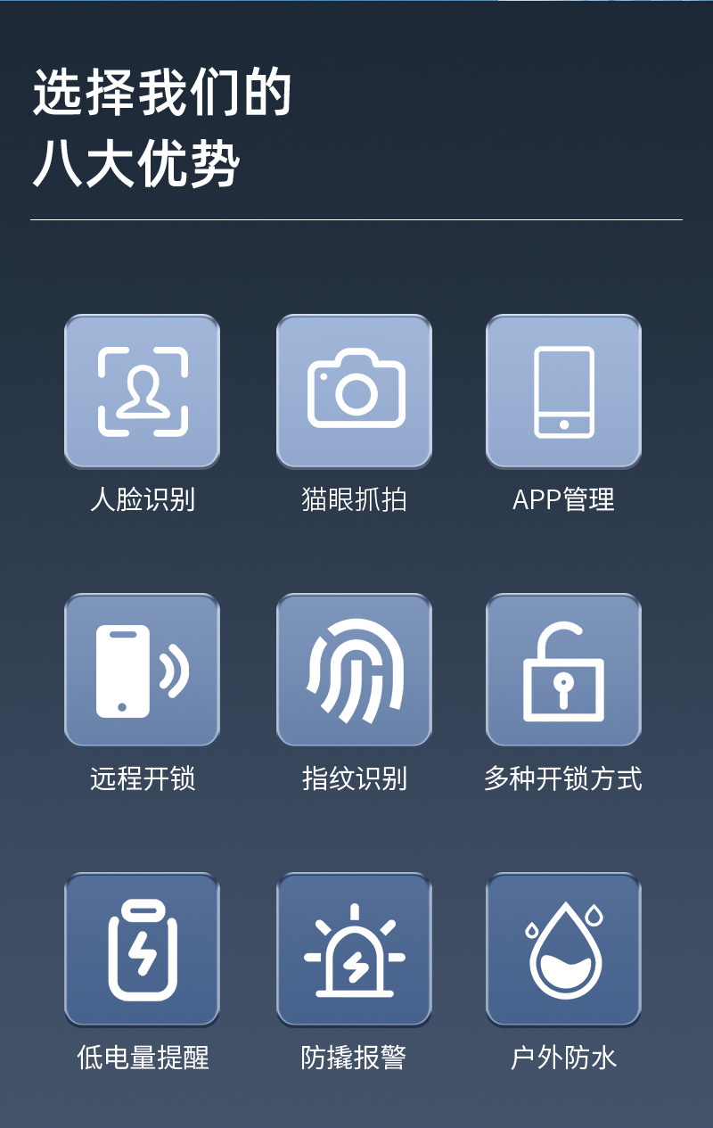 スタイル モダンなシンプルさ,指紋,防水,パスワード,鍵付き,視覚的な猫の目,顔認識,リモートロック解除