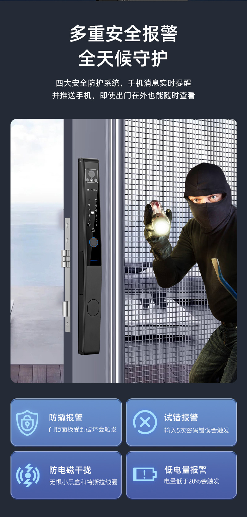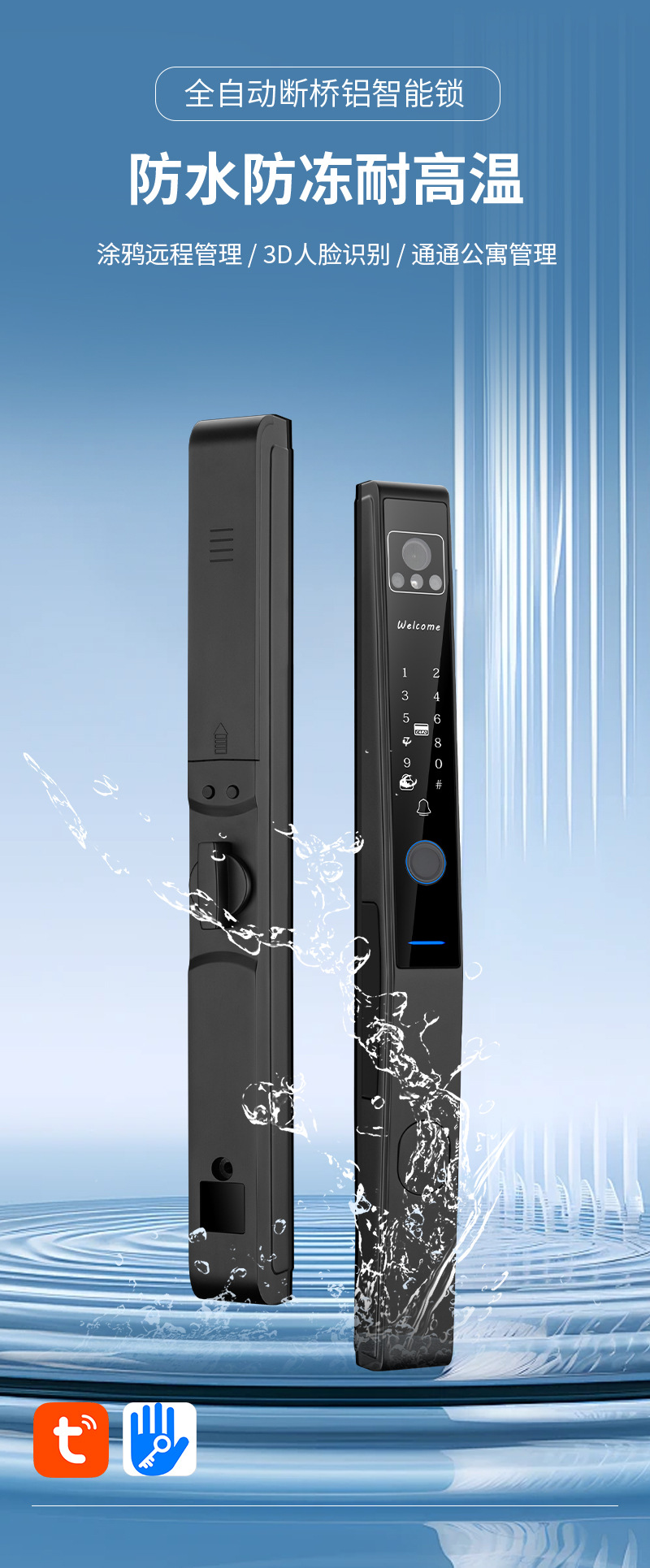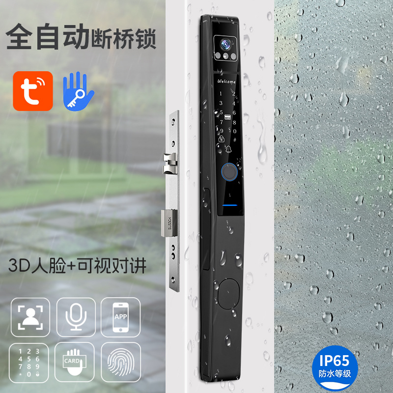 户外防水断桥铝指纹锁3D人脸锁铝合金门密码智能锁房门锁家用