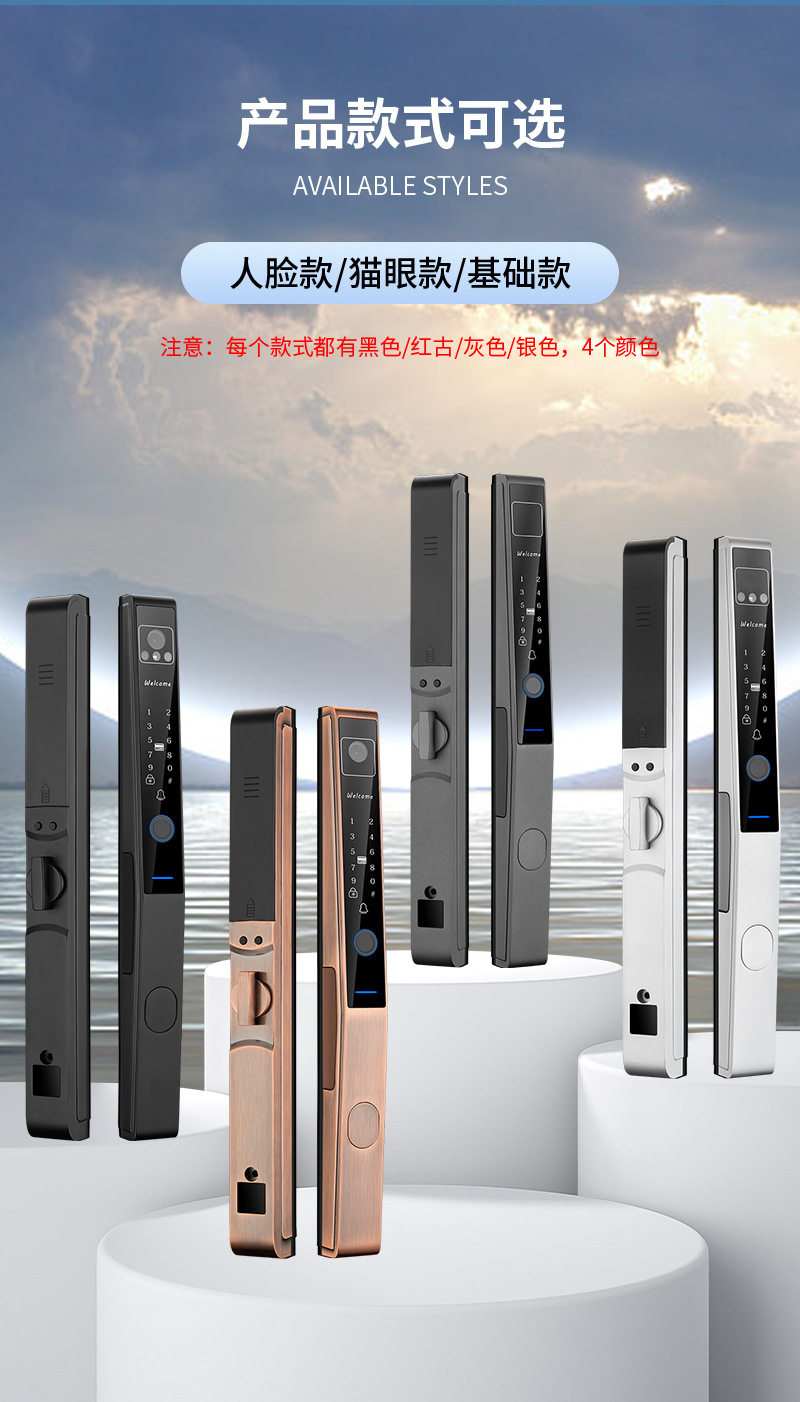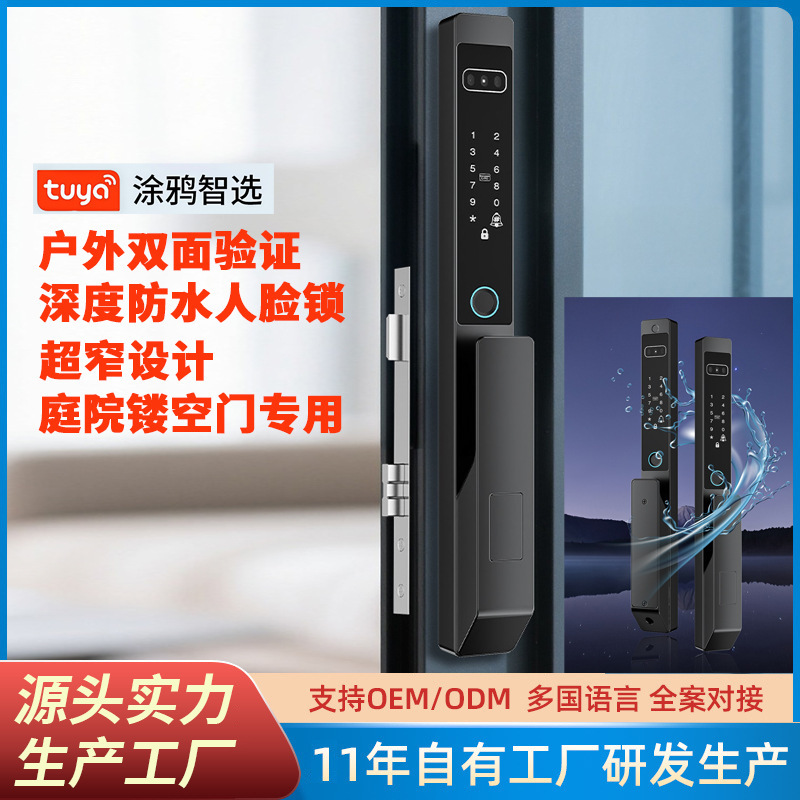 双面人脸指纹识别断桥铝推拉门涂鸦智能门锁庭院门户外防水密码锁