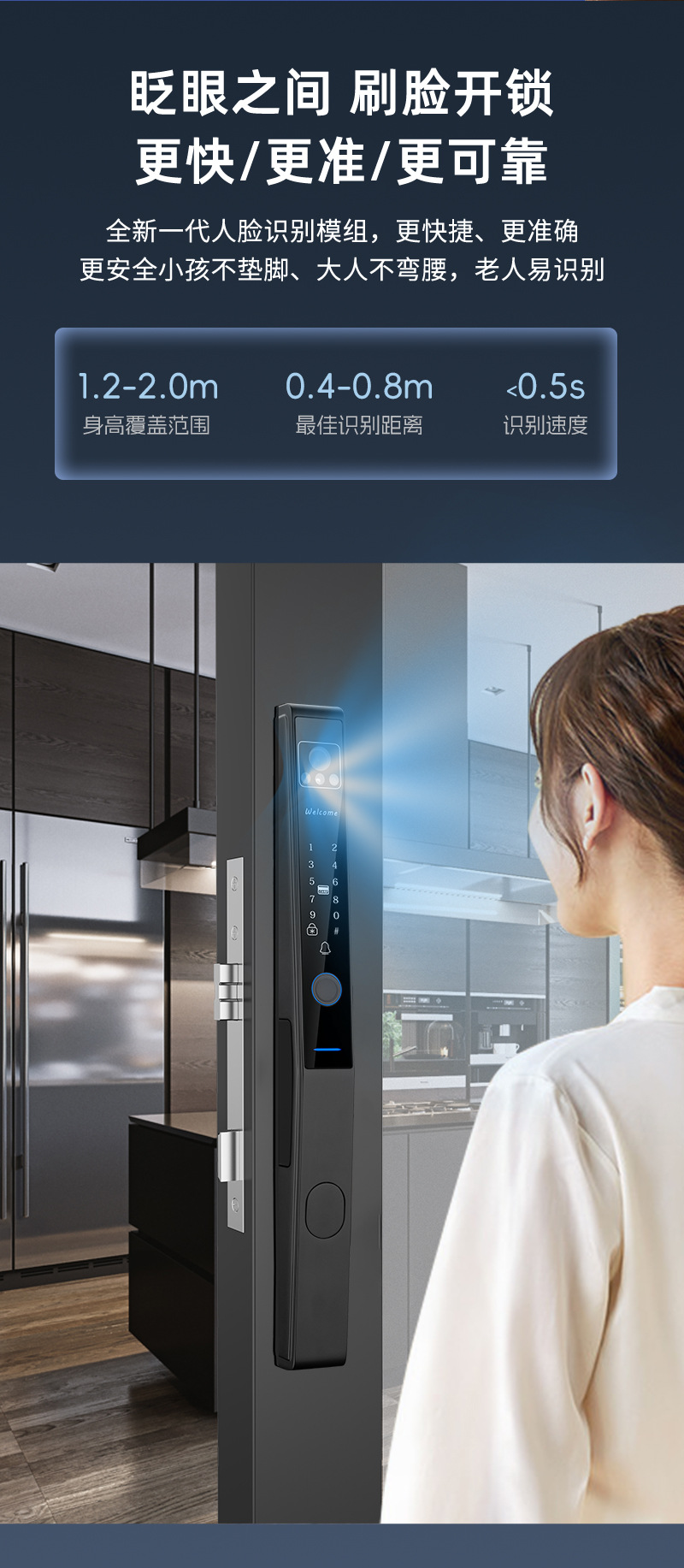 全自动智能门锁指纹密码锁入户智能锁家用人脸识别远程开门监控A3