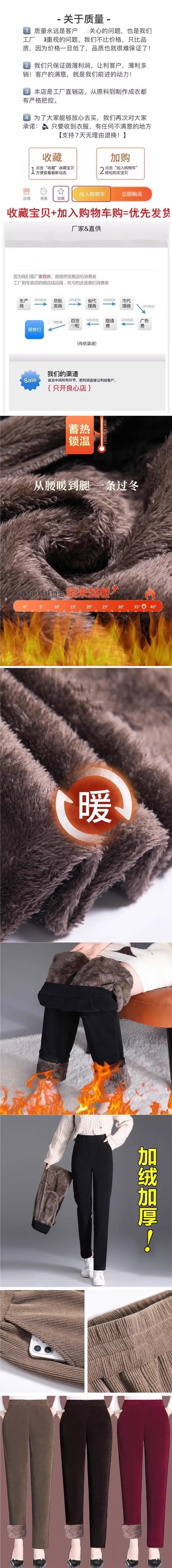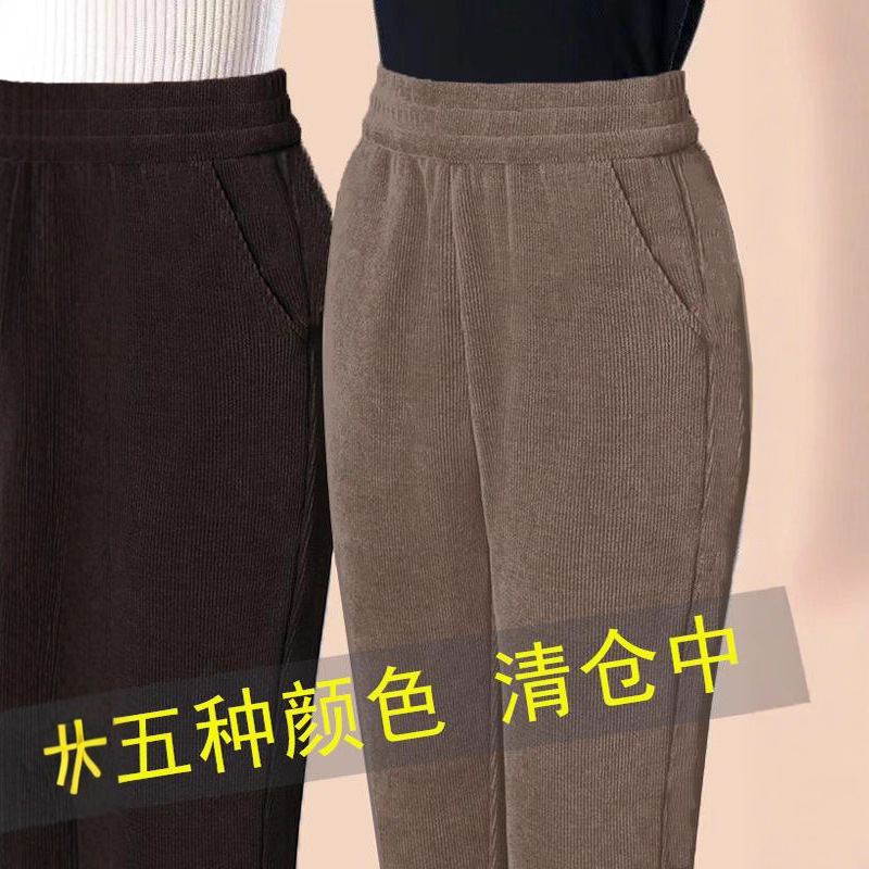 秋冬灯芯绒休闲裤女士保暖显瘦妈妈哈伦裤高腰直筒中老年女裤加绒