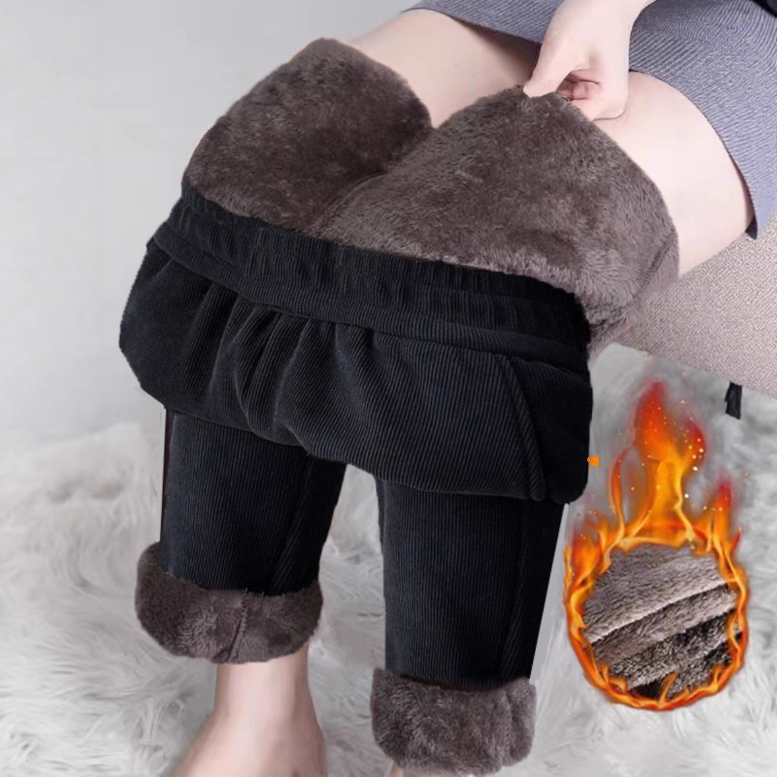 老年人加绒裤子妈妈裤子冬加厚宽松大码中老年女裤加厚灯芯绒长裤