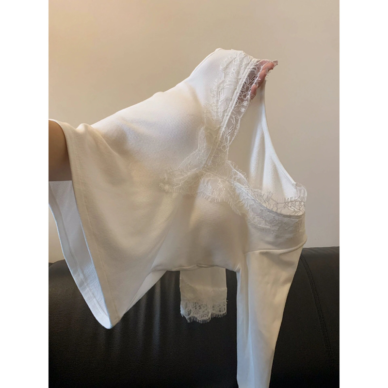 欧米風の純色レースの縁のvネックの長袖のtシャツの女性の秋冬の徳の絨毯の保温の底のシャツの修身の短い上着