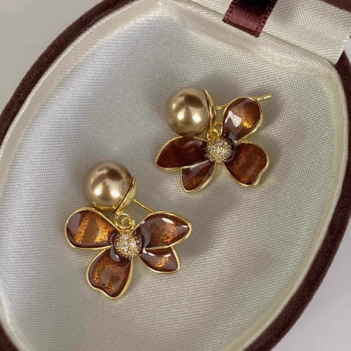 法式复古美拉德咖色花朵耳环女森系轻奢小众高级感气质耳钉耳饰品