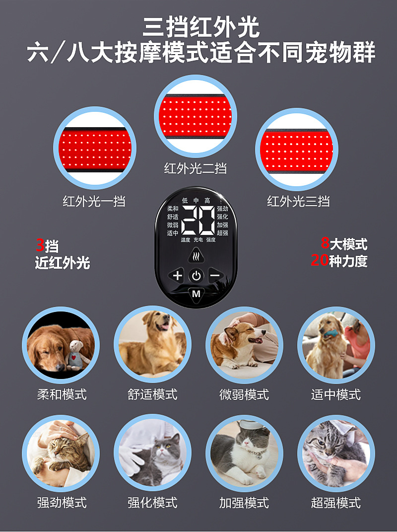 ポータブル充電タイプの赤い光ペット理学療法器遠赤外線光子熱敷筋絡損傷骨折リハビリテーション神器