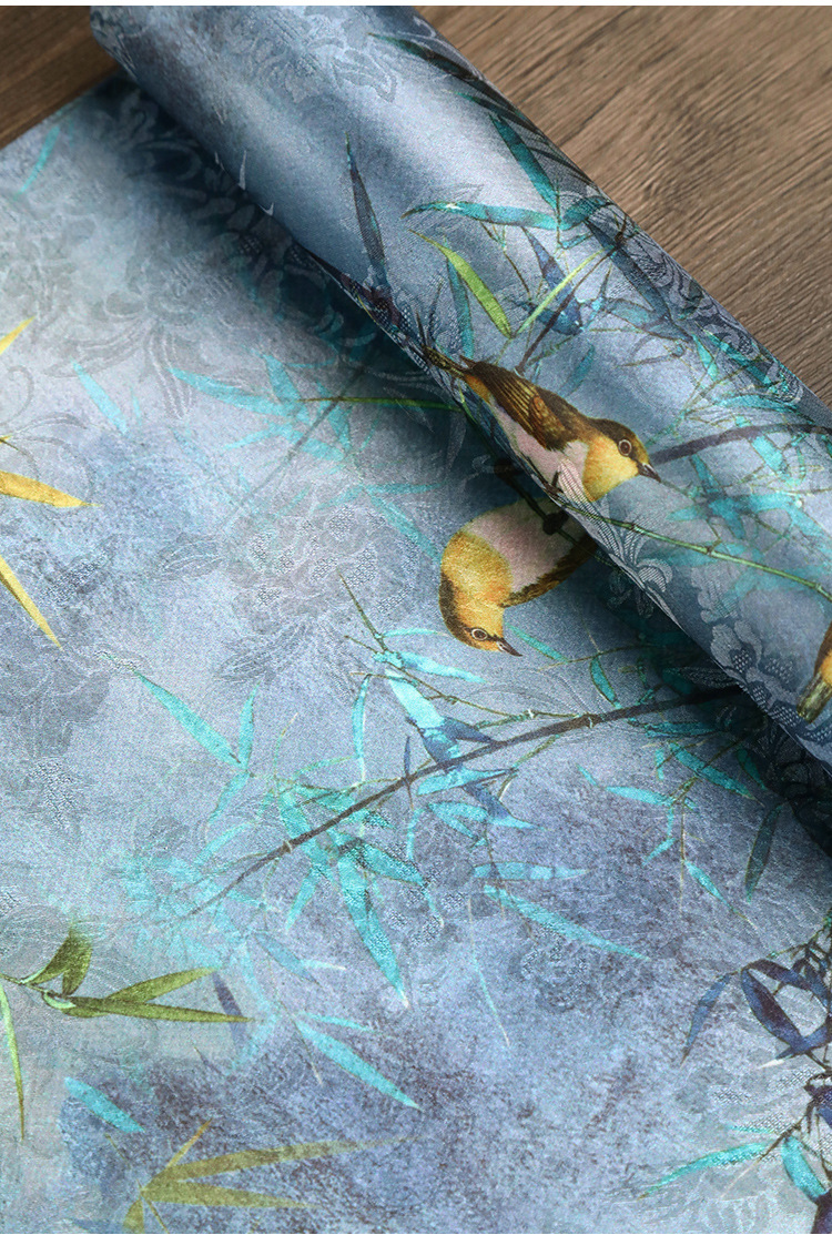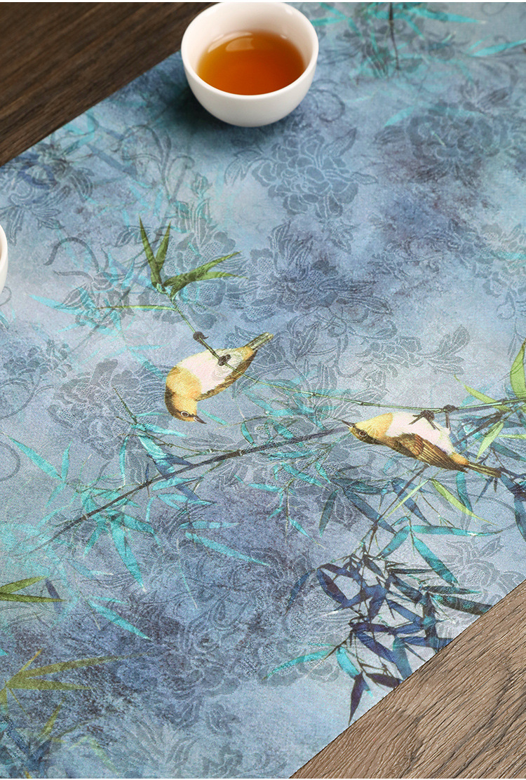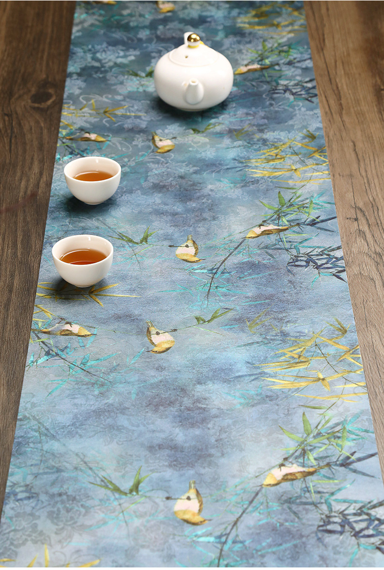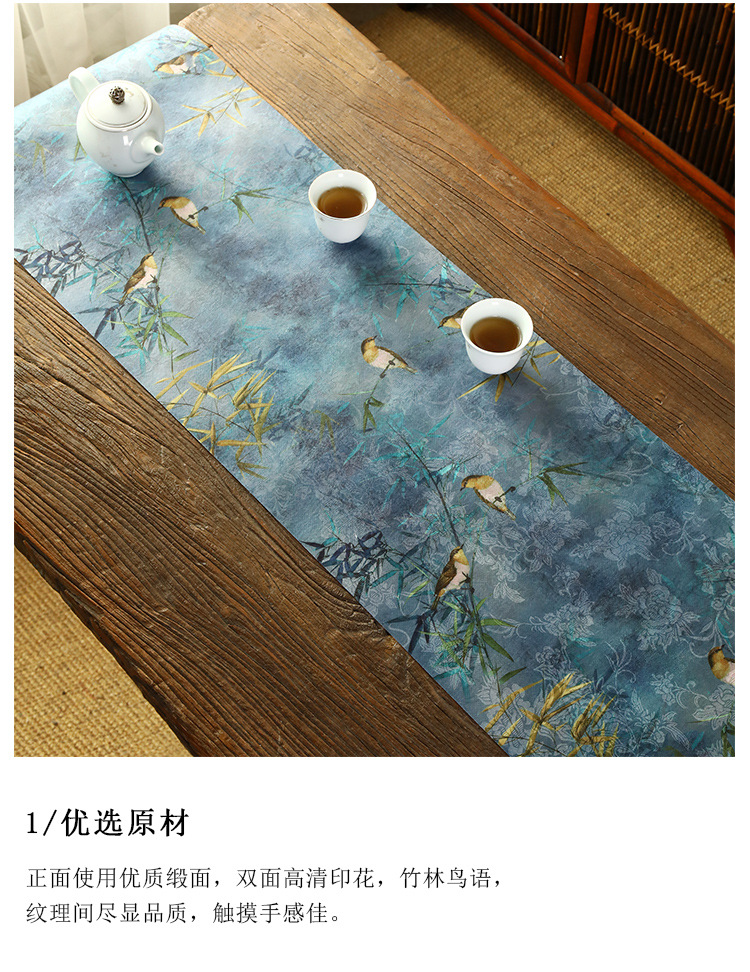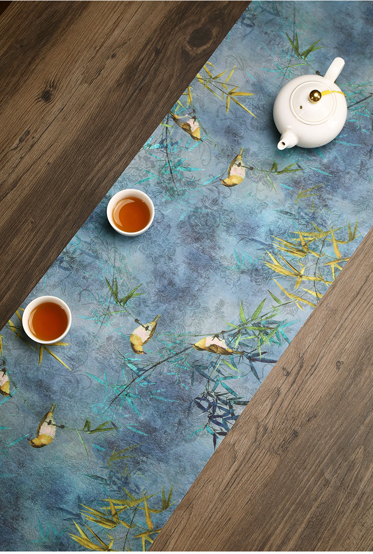 中国風竹茶席卸売 クラシックシルク禅風竹テーブルランナー 茶卓布 長尺 レトロ新中式雲錦模様