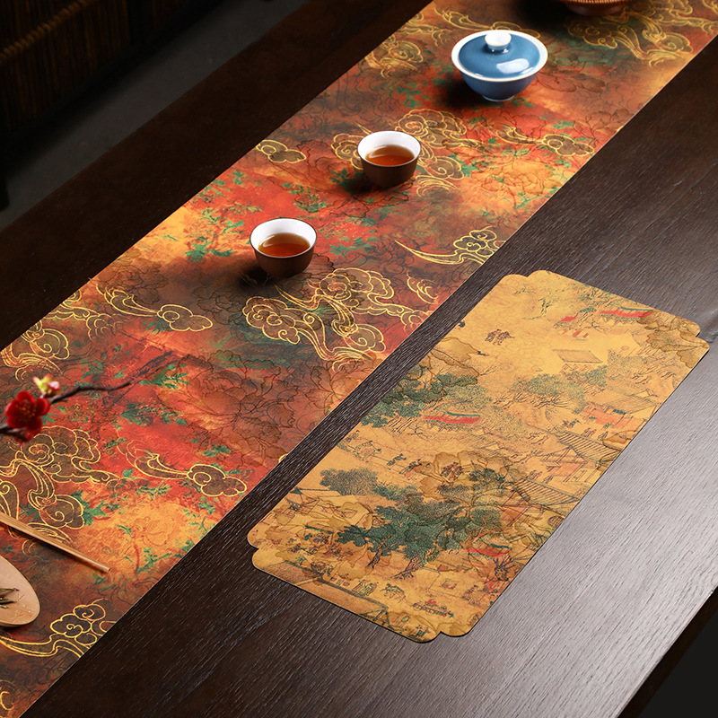 防水茶席中国式両面茶マット布芸テーブル旗長方形大サイズ茶旗茶何敦煌系国風家庭用