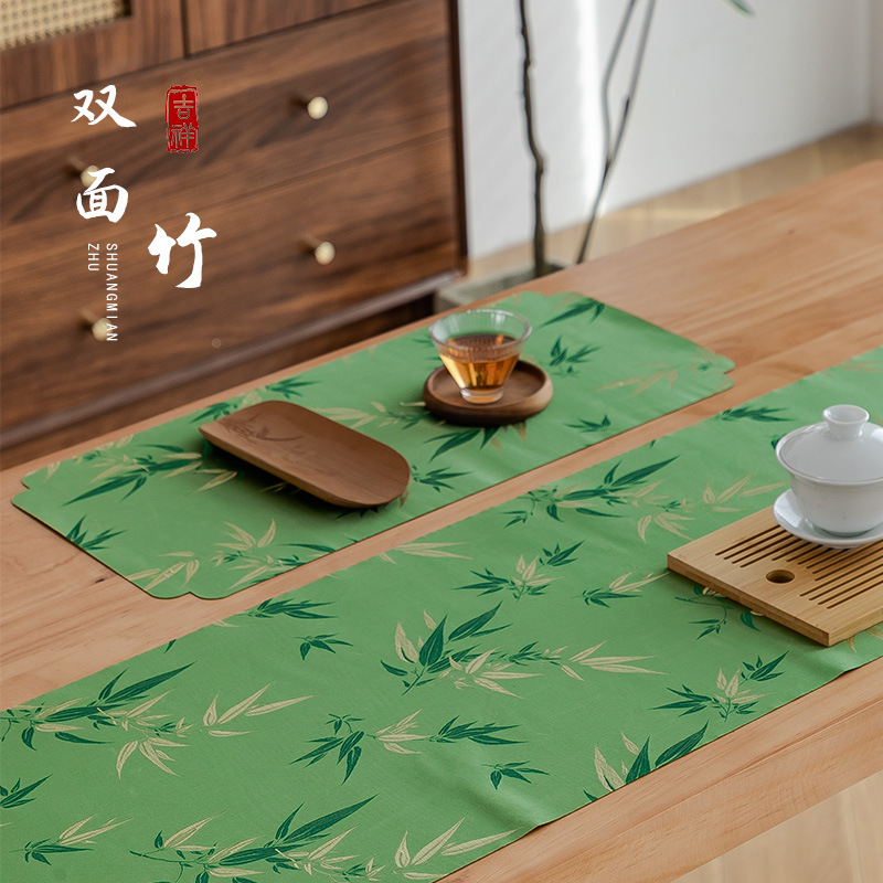 防水茶席中国式両面茶マット布芸テーブル旗長方形大サイズ茶旗茶何軽豪華中国風竹
