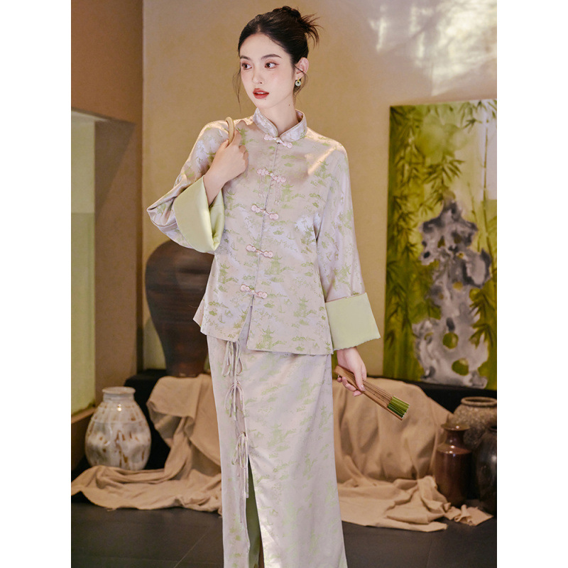新中国式スーツ女性2025新型春超火国風改良チャイナドレス高級感着禅意二点セット