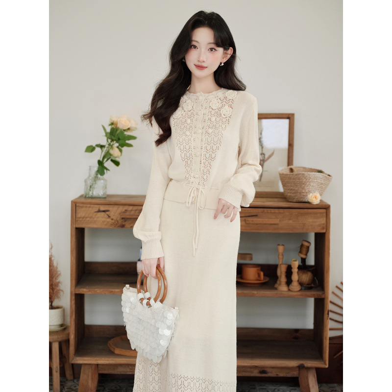小香风超好看的毛衣针织衫上衣配包臀半身裙早秋一整套装裙两件套