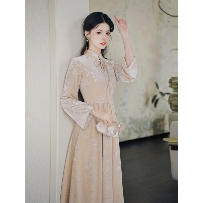 新中国風ベルベットワンピース女性冬改良版チャイナドレス2023