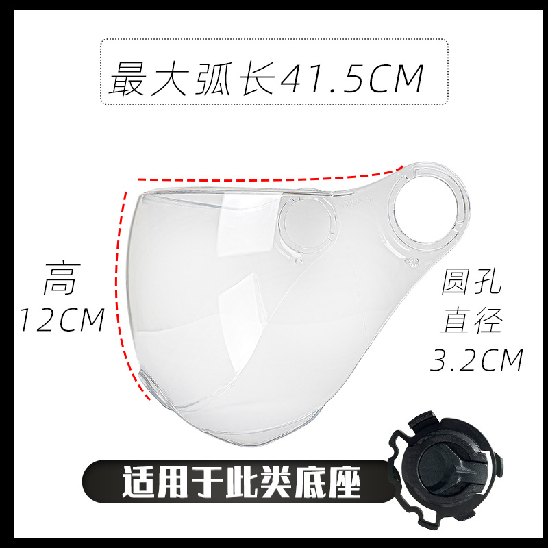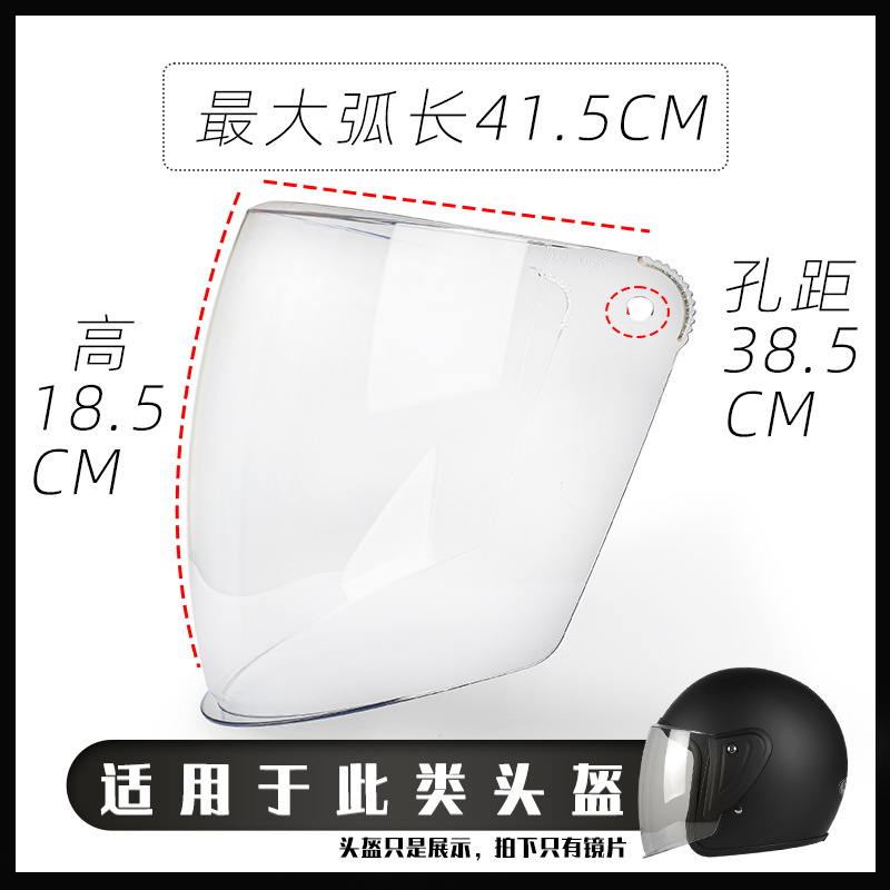 头盔镜片电动车摩托车半盔头盔镜片挡风镜面罩玻璃高清透明防晒雾