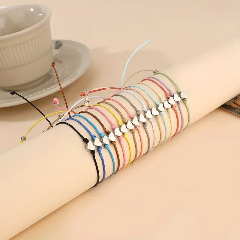 アマゾン限定 欧米風 合金 シルバー ハート 手編みブレスレット 母娘 ハート型ブレスレット 14色 在庫あり