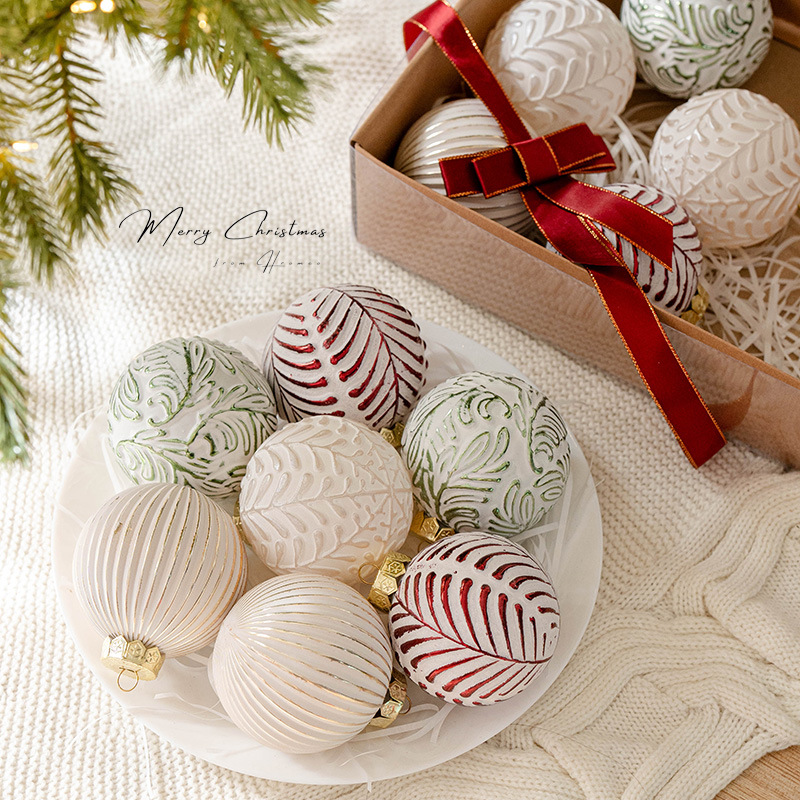 クロスボーダー新品8cm箱入りクリスマスボール彩色ボール吊りボールクリスマスツリー装飾ストラップ手作り珠光柳葉ボール