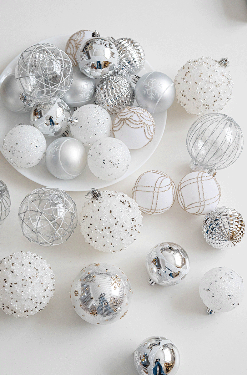 クロスボーダー新品クリスマス飾り8cm箱入りクリスマスボールクリスマスツリー飾りストラップ手作り白いボール