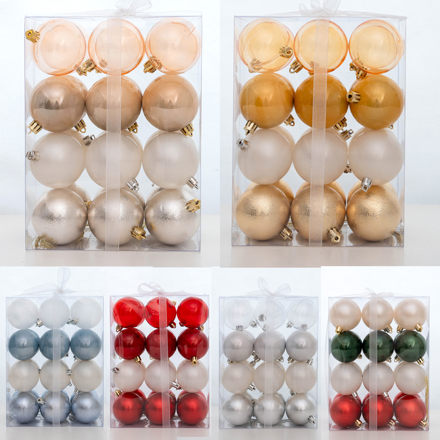跨境热卖圣诞节日酒店派对装饰品48pcs电镀圣诞球套装圣诞树挂件