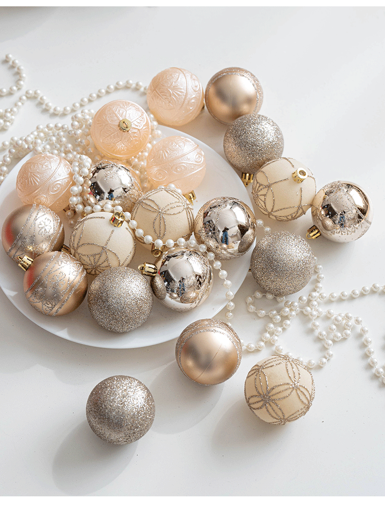圣诞节装饰15cm香槟色红色圣诞球圣诞树装饰挂件创意彩绘气球挂件