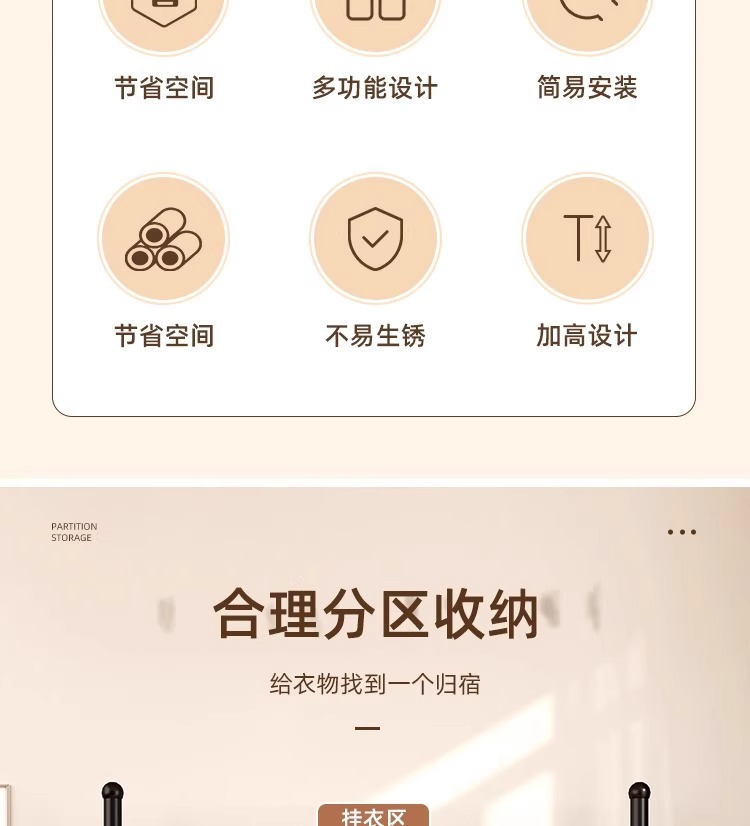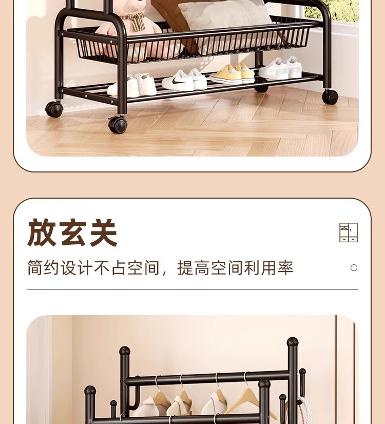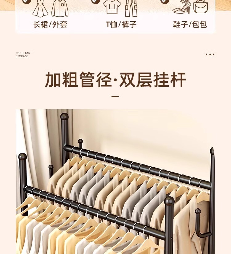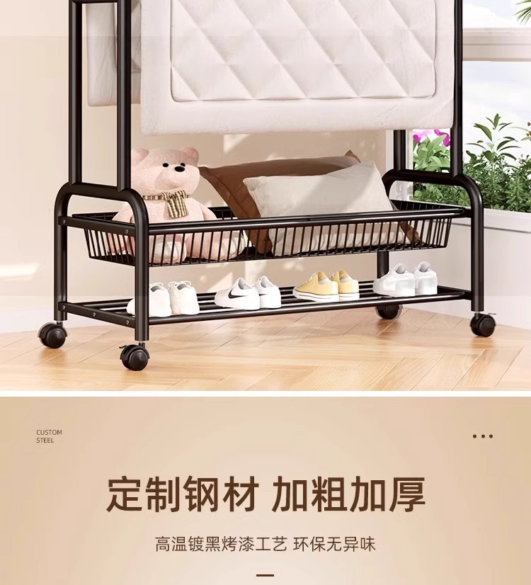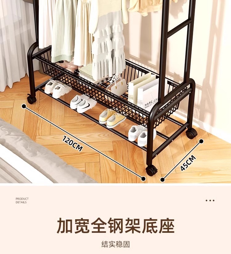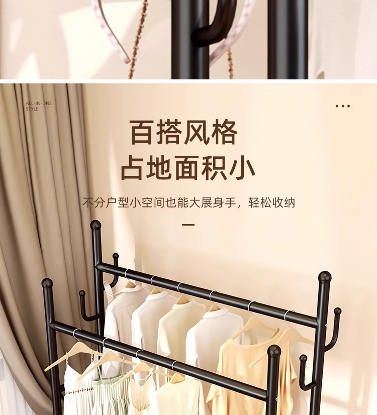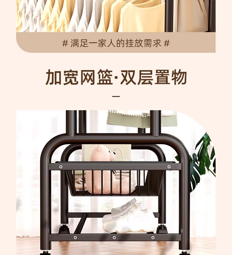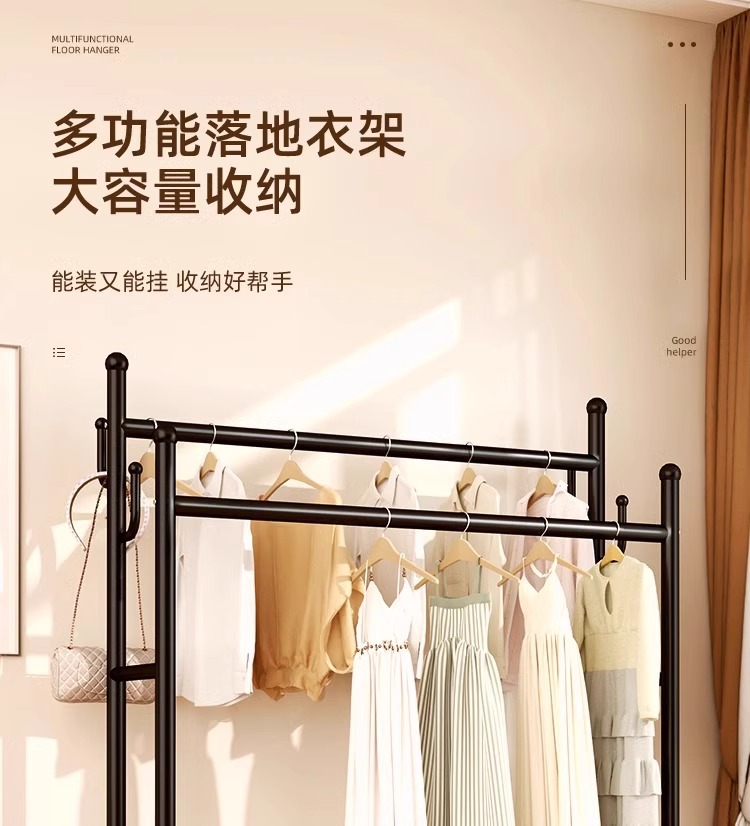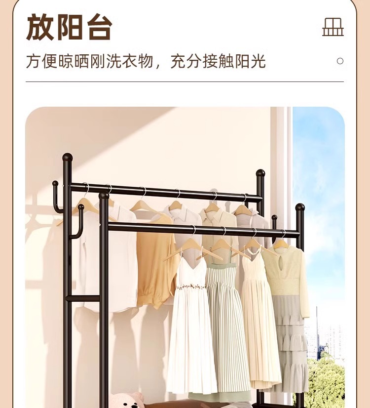 衣帽架落地卧室内家用阳台晾衣架简易衣服收纳置物架双杆挂衣架子
