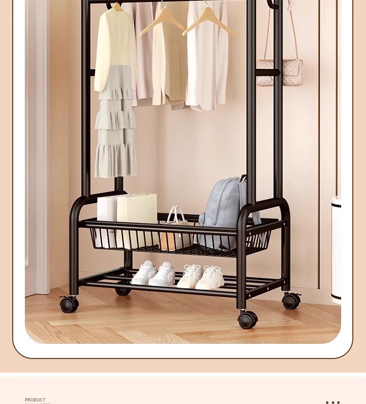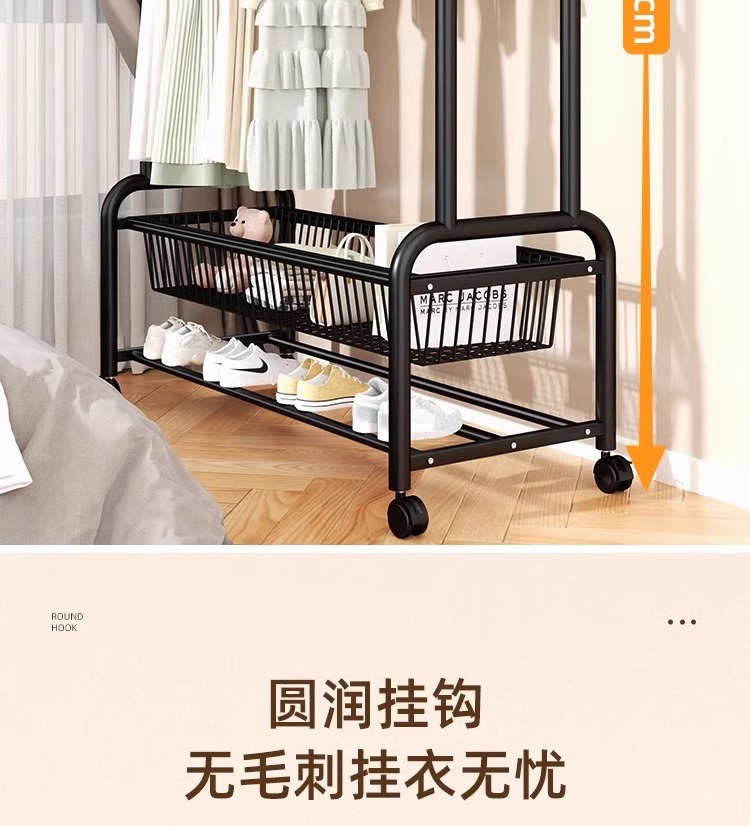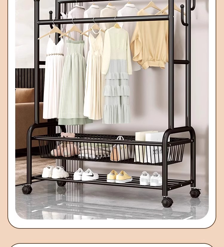 二本棒ハンガー移動可能フードラック床置き室内ハンガー家庭用寝室服収納ラック