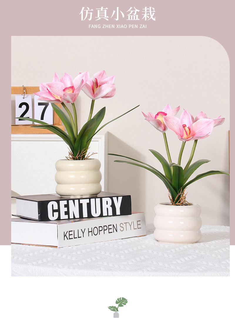 模造花手触り保湿15葉香雪蘭造花鉢植え客間家庭食卓装飾品模造花君子蘭
