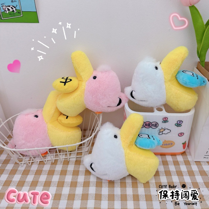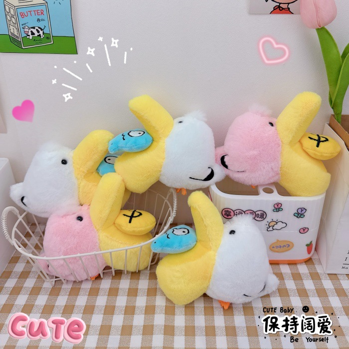 Ins風網紅給油アヒルのキーホルダーが可愛いぬいぐるみのカバンに飾られています。